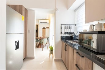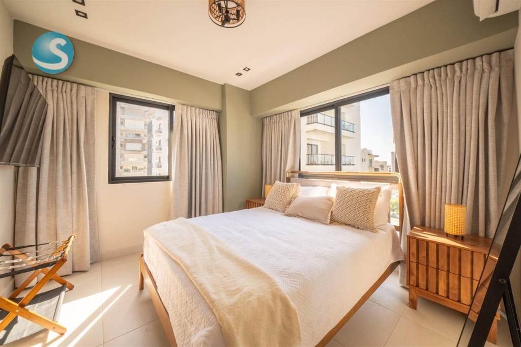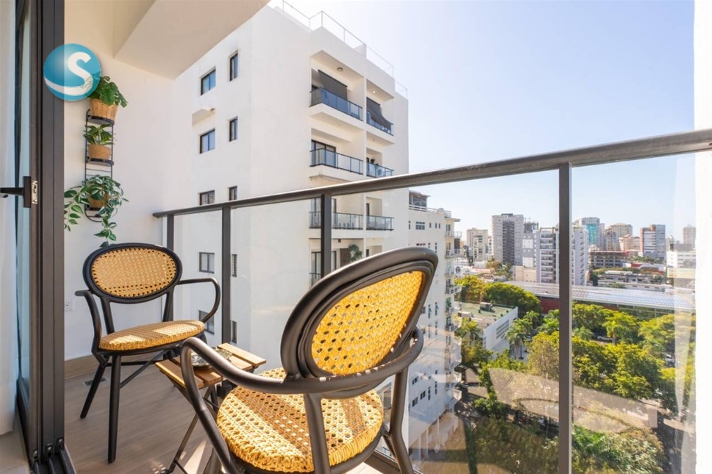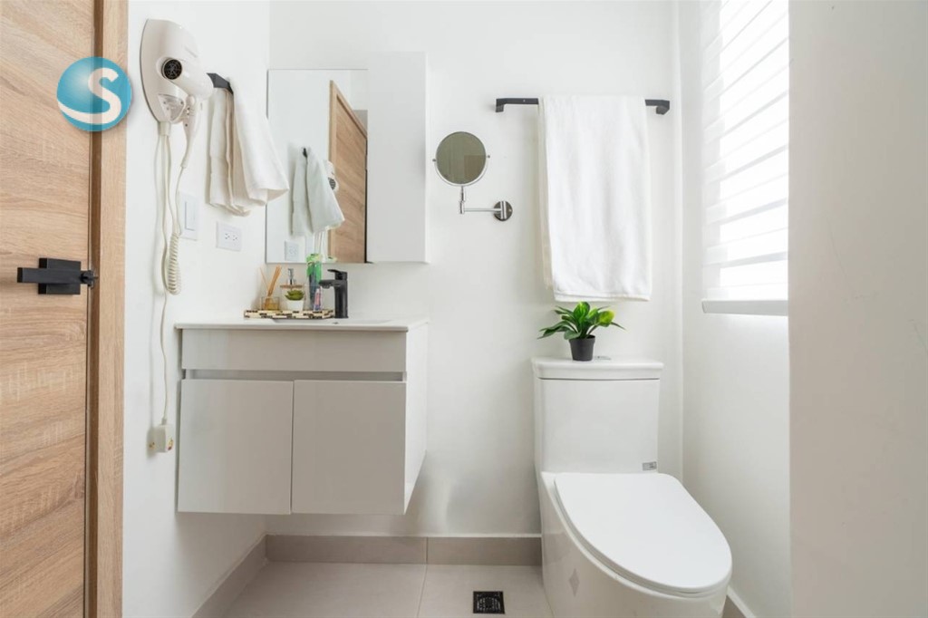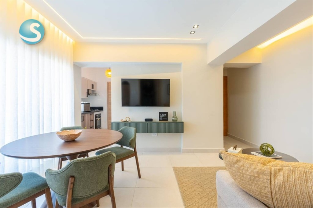 Apartamento Amueblado en Torre en Naco Ubicado en una moderna Torre en Naco, este elegante apartamento ofrece una combinación perfecta de comodidad, estilo y ubicación privilegiada en el centro de Santo Domingo. Su posición en un piso alto permite disfrutar de una hermosa vista, ideal para vivir o inversion en rentas cortas, donde podrás obtener altos retornos sobre tu inversion. - Piso 12 - Una habitación - 1.5 baños - Sala - Comedor - Balcón - Cocina - Closet de lavado - Un parqueo #3113