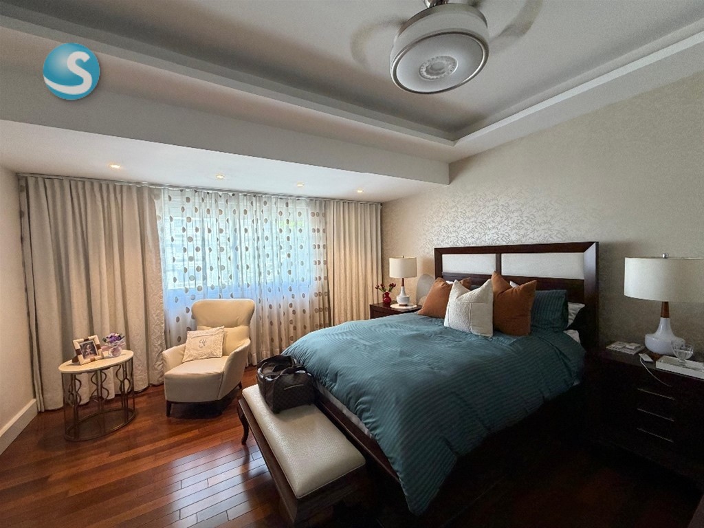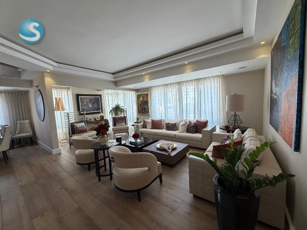 Naco - Alquiler Amueblado de Lujo 225 metros Piso 3 ( Un Apartamento por piso) 3 Habitaciones c/u con Baño y W/C 3.5 baños Estudio Sala Comedor Cocina Area de Lavado Cuarto de Servicio con Baño 3 Parqueos paralelos Shutters en todas las areas Sistema de sonido integrado Filtro de agua Potable incluido Amenidades: Lobby Amueblado y Climatizado Sala de Espera Amueblada Jacuzzi Piscina Bbq Terraza Techada y Destechada Area de niños Gimnasio Alquiler Amueblado: US$4,000
