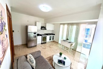 Amueblado en Naco con fácil acceso a la Tiradentes, Roberto Pastoriza y 27 de febrero. 3er Nivel, 58 Mts, vista al frente -1 Habitación -1.5 Baños -1 Parqueo Techado -Recibidor -2 balconettes largos tipo mirador -sala comedor -baño de visitas -1 habitación con baño y 2 amplios closets -cocina abierta -área de lavado cerrada -Pisos en mármol -calentador de gas -aire acondicionado inverter -Lavadora secadora a gas en torre. -Ascensor -Lobby -Amueblado -seguridad 24 Horas -Gas común con medidor -Planta Full Mantenimiento: Rd$5,980 PRECIO VENTA: USD$ 120 Mil
