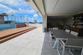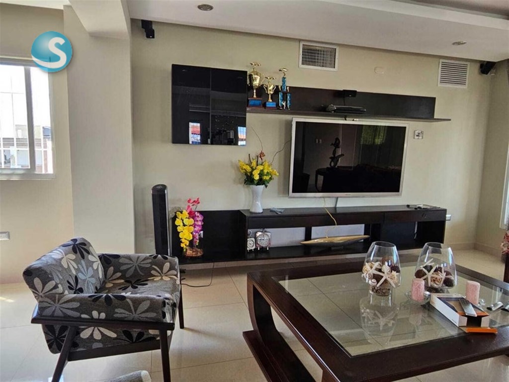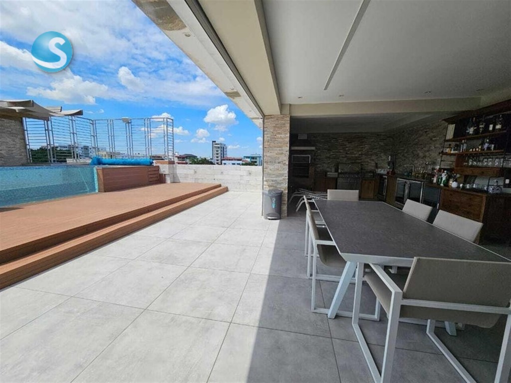 MLS #23-1779 Apart con amplia sala y cocina abierta con la Linea Blanca incluida y aires acondicionados, ubicado en el Ensache Ozama, cerca de tiendas y restaurantes con una terraza comun con picuzzy, BBQ, salon privado y area de lavado. Sólo 2 apart en el edificio. Tiene otra terraza adicional en el techo del edificio. Tiene 2 parqueos techado y porton electrico y planta electrica, y pozo de agua. Oficina