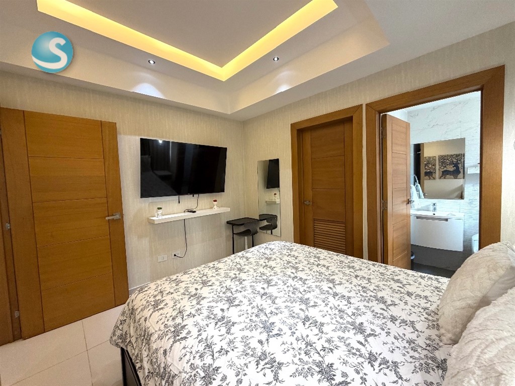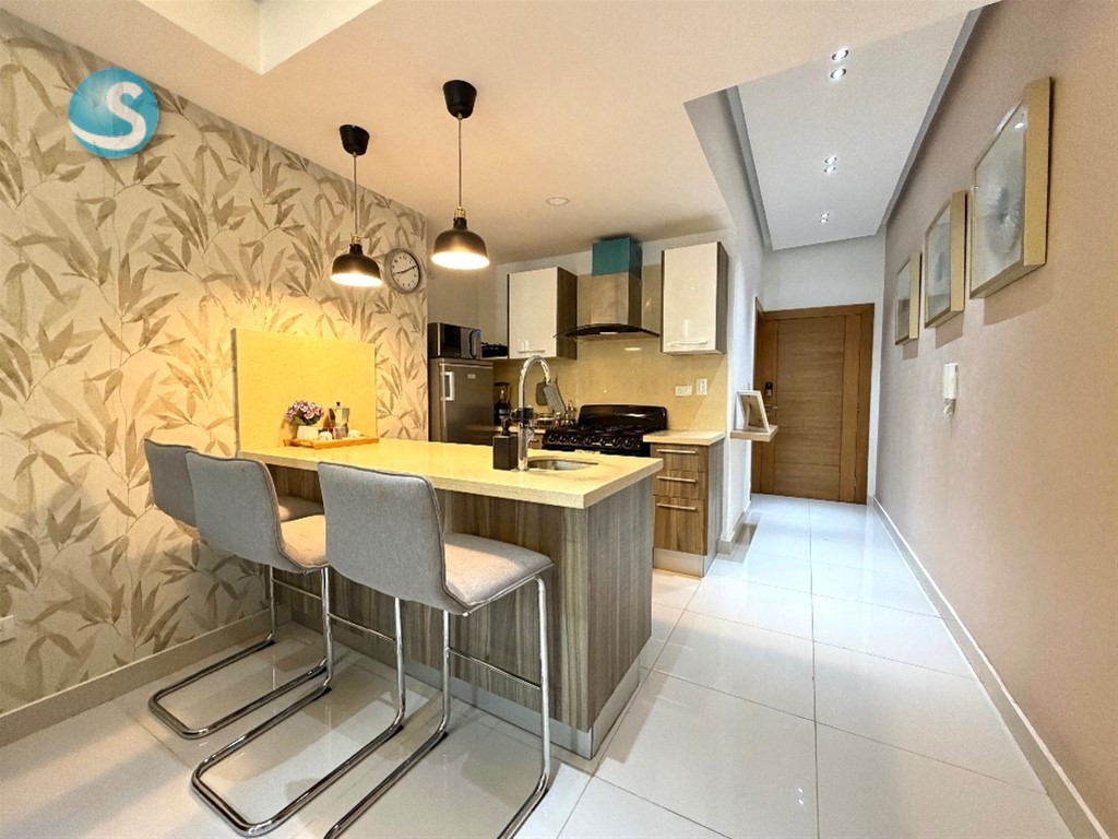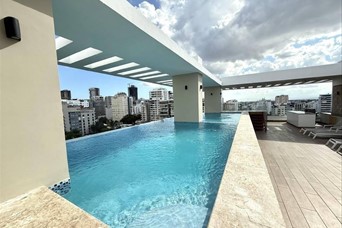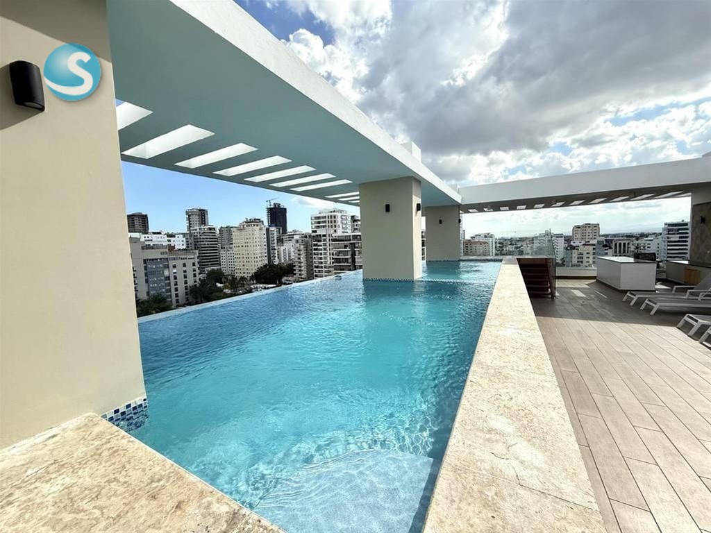 ENSANCHE PARAÍSO Acogedor Apartamento en Moderna Torre con todas las comodidades que te mereces. ALQUILER AMUEBLADO US$1,000 68 MTS| 1 HAB | 1.5 BAÑOS | 1 PARQUEO Amenidades: Driveway Amplio lobby tipo hotel Dos ascensores de alta gama Área para choferes Piscina Cine Salon multiuso y eventos Área de niños con playground Gimnasio equipado Terraza amueblada BBQ - Bar & Lounge