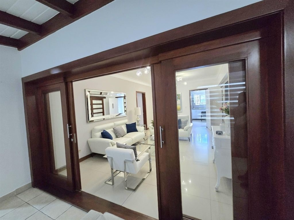 Este hermoso apartamento, está en ??Paraíso con una ubicación privilegiada en el centro de la ciudad, es súper amplio, bien distribuído, con sus espacios definidos y una enorme terraza techada; ofreciéndole a tu familia distintos ambientes en los cuales compartir. El apartamento está totalmente amueblado y cuenta con: 3 Habitaciones. Principal con baño y walking closet. 2 Habitaciones cada una con su baño. Sala Comedor cerrado Recibidor Baño de visita Cocina Terraza Techada Family Room Cuarto de Lavado Cuarto de Servicio 2 Parqueos paralelos Ascensor Mantenimiento: $RD 12,000. Más imágenes en www. mudate .net Código: 9948 Más Información: Michell Marty Celular / Whatsapp:+1 (829) 551-2277 [email protected]