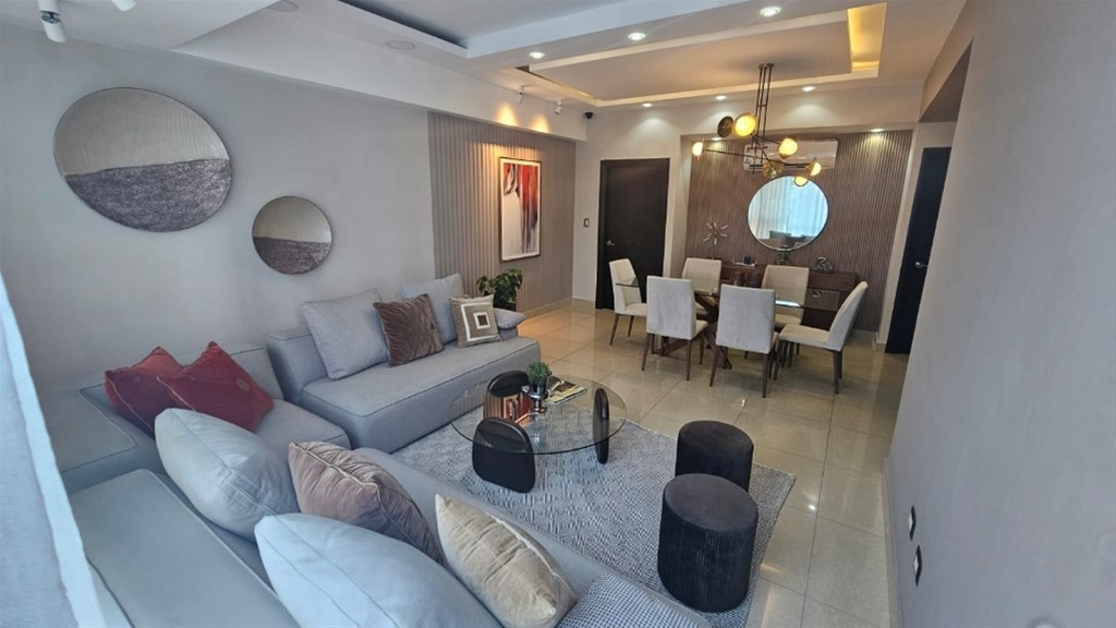 Alquiler de apartamento Amueblado en Ensanche Paraíso US$ 1,400.00 (mantenimiento incluido) 137m2 (neto) 3er nivel (vista despejada) 3 habitaciones (una convertida en estudio y se puede entregar amueblada como habitación normal si así lo desea el cliente) 2.5 baños Sala Comedor Balcón integrado Cocina Habitación de servicio con su baño Área de lavado 2 parqueos lineales y techados Cerradura Digital Gas común Ascensor Planta eléctrica full Seguridad 24/7 Lobby No Gym, No piscina….NO ÁREAS SOCIALES.