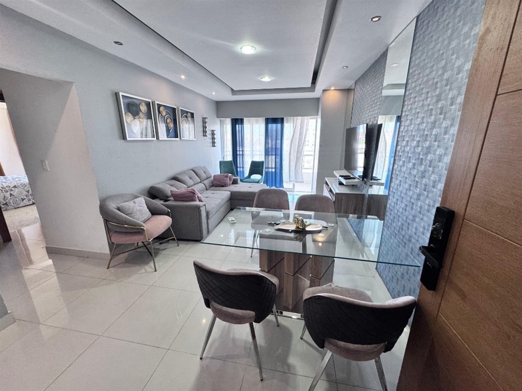 Apartamento en alquiler amueblado Ensanche Paraíso . Piso: 9 . 2 habitación (Principal con Walk-in closet y baño privado) . 1 baño común . Sala-comedor . Cocina . Cuarto de servicio con su baño . Balcón . 2 parqueos paralelos Características de la torre: . Lobby . Gimnasio . Área social . Piscina . Terraza . Salón para eventos . Área de niños Precio de alquiler U$ 1,600 Ligeramente negociable Mantenimiento incluido