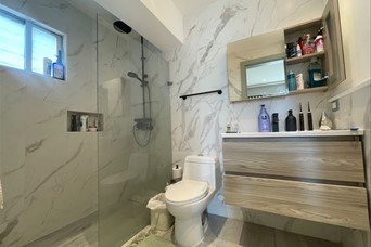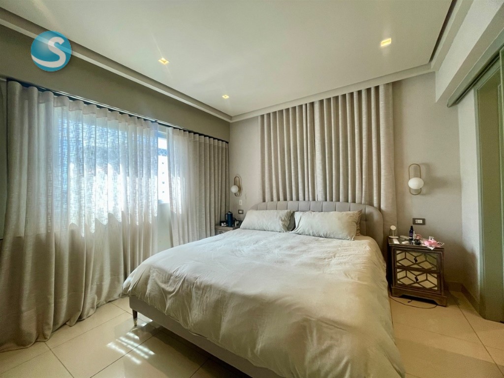 partamento en venta en Ensanche Paraíso! Piso 8 183m² 3 habitaciones, principal con amplio wc 3.5 baños Balcón Sala Comedor Estar familiar Cocina cerrada Área de lavado Cuarto de servicio 2 parqueos paralelos y techados Amenidades de la torre: Lobby Ascensor Vigilancia 24 horas Planta full Precio de venta USD$300,000 información 849-342-8022