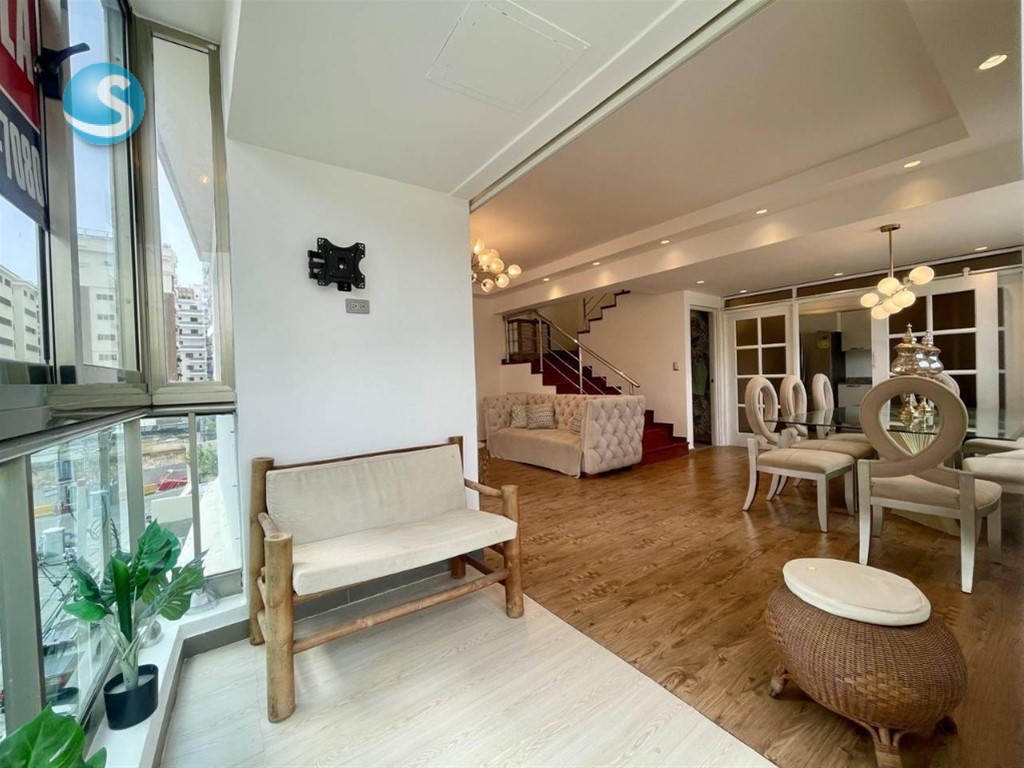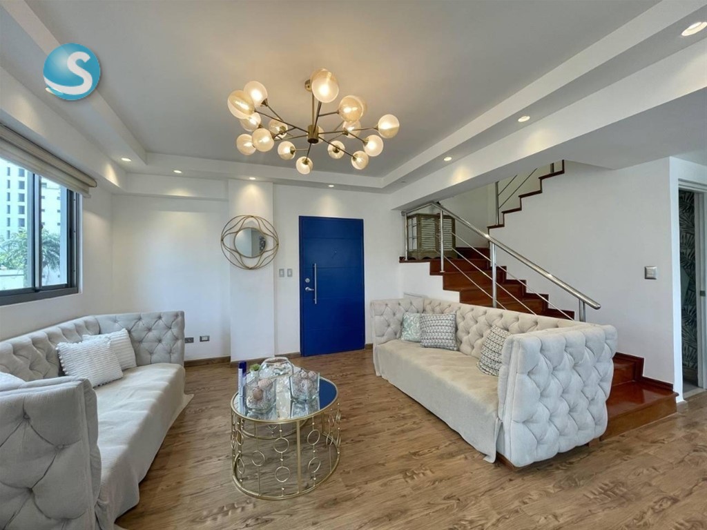 Apartamento amueblado de 2 niveles ubicado en Ensanche Paraíso 2 habitaciones 2.5 baños Sala Comedor Balcón integrado Estudio (anteriormente habitación) Cocina cerrada Área de lavado Habitación de servicio 2 parqueos techados y paralelos CARACTERÍSTICAS DE LA TORRE Ascensor Lobby Planta full Precio de renta USD$1,800 Informacion Aracelis Alvarado 809-763-2932