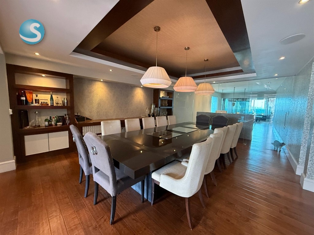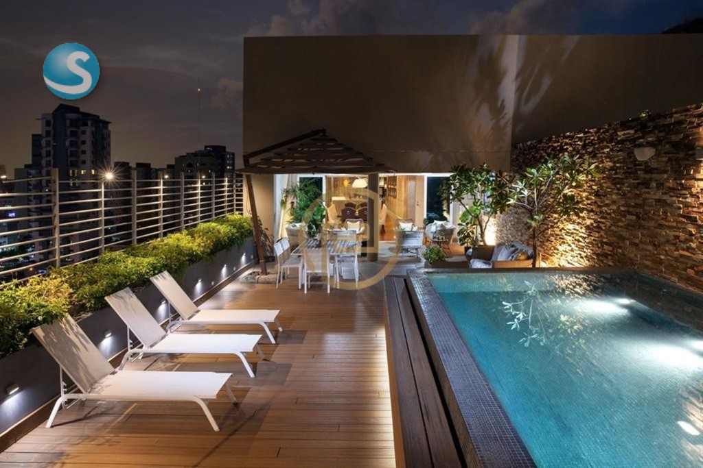 APARTAMENTO EN VENTA- PARAISO PISO 11, 600 metros, Terraza vista panoramica, 3 habitaciones con baño y walk-in closet, Estudio con baño completo (opcional 4ta habitación), Oficina privada, Recibidor, Sala amplia y comedor, Comedor de diario, Amplia Cocina, Cava, Piscina privada con baño, Sauna, Sistema de audio y automatización Lutron, Cuarto de servicio Medio baño para visitas, Área de lavado, 3 parqueos techados, 2 entradas privadas desde el ascensor (1er y 2do nivel), planta full, sistema de alarma, cámara, vigilancia 24 hora lobby . PAGA DE MANTENIMIENTO US$600.00 PRECIO DE VENTA US$1, 300,000 // RE/MAX/ID: 217934