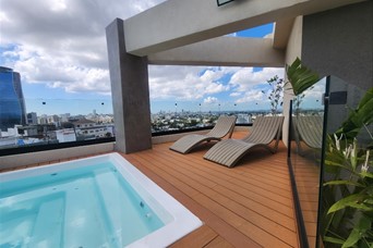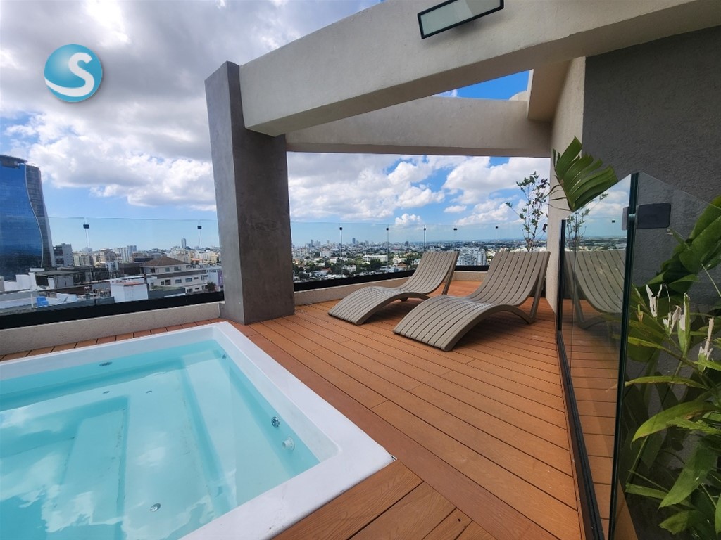Apartamentos en Ens.Paraiso A pasos de supermercados y Blue Mall -100mt2 -1 habitación con baño y walk in closet. -Baño de visita -1 parqueo -Terraza privada con jacuzzi -Amueblado. Area social con picuzzi en último nivel con increíble vista a la ciudad Contáctame