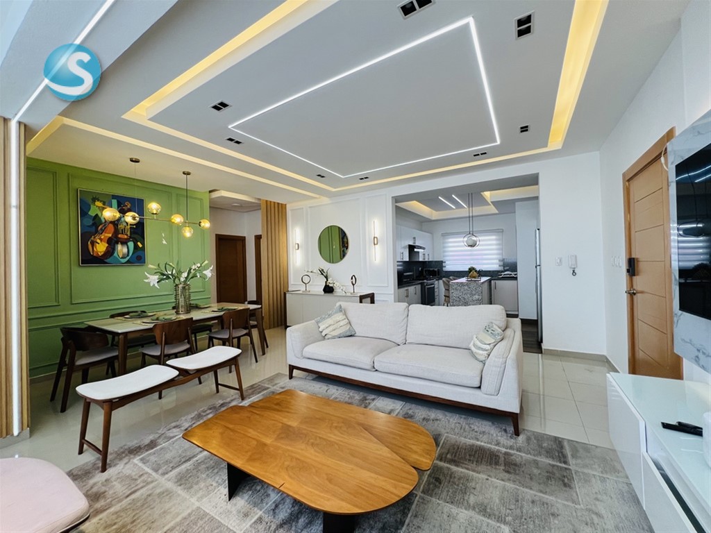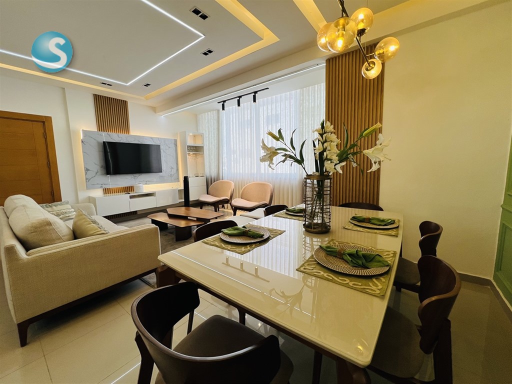 Apartamento amueblado de lujo en venta – Ensanche Quisqueya Hermoso apartamento finamente amueblado ubicado en una de las zonas más céntricas del Ensanche Quisqueya. Ideal para vivir con comodidad o como inversión de alta rentabilidad. Cuenta con 2 amplias habitaciones, 2 baños modernos, sala y comedor elegantemente decorados, y una cocina totalmente equipada con electrodomésticos de calidad. Los muebles han sido seleccionados con un estilo contemporáneo y sofisticado, listos para mudarse sin necesidad de inversión adicional.