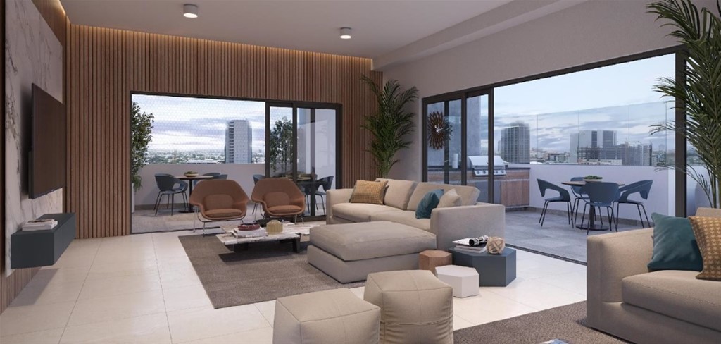 Apartamentos de 1, 2, 3 habitaciones. Metraje: 70, 72, 78, 88, 116, 159 mts2. Características: Amplio lobby Paneles solares en área común Sauna Gym/yoga área Pre instalación de Automatización Pre instalación cargador carros eléctricos Parqueo de bicicletas Pet Park Área social con: – BBQ – Baños – Terraza techada y destechada – Lounge Privado – Piscina – Sauna – Gimnasio – Área de juego para niños Dos elevadores Sistema contra incendio Video portero Cámaras de seguridad Código: 7926 Más Información: Javier Martínez Celular/Whatsapp: 809-330-1727 [email protected]