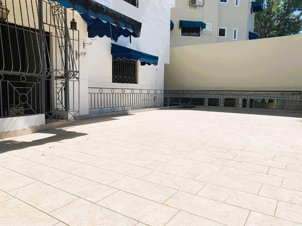 Un clásico de segundo nivel con amplia terraza, muy bien ubicado, a una cuadra de la Winston Churchill, cerca del polígono central de Santo Domingo donde tendrá fácil acceso a restaurantes, colegios, bancos, gimnasios, centros comerciales, etc. Este apartamento cuenta con: - sala/comedor - balconcette - terraza frontal de 66 mts2 con piso anti-resbalo - cocina con muebles en madera preciosa y tope de granito natural - área de lavado - cuarto de servicio completo - 3 dormitorios con closets (principal con baño) - 2 baños - 2 parqueos techados y paralelos Terminaciones: - pisos de porcelanato - portajes en caoba - ventanas de cristal tipo persiana, - cornisas en yeso Mantenimiento: RD$5,500.00