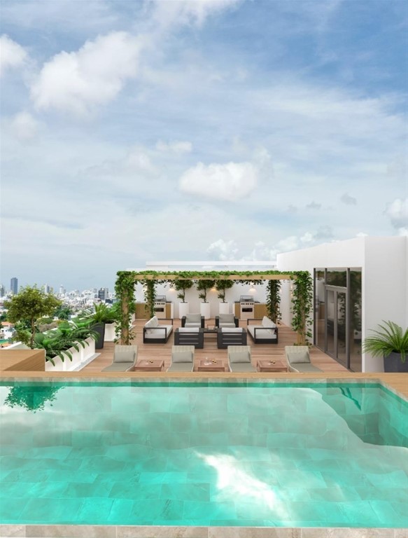 Apartamento en venta zona: evaristo morales a dos esquinas de acrópolis center entrega a finales de este años 2025 caracteristicas: apartamento de 65.45 metros balcon sala cocina comedor una (1) habitación uno y medio (1.5) baños un (1) parqueo techado áreas sociales de la torre: área de niños gimnasio salón multiuso terraza área de bbq piscina precio venta us$159,000.00 (rebajado) encargada: sobeida nin tel.: 809-430-6710