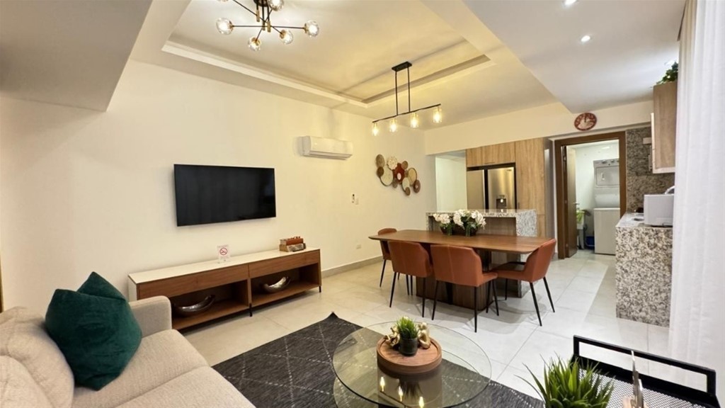 ALQUILER AMUEBLADO EN EVARISTO MORALES Características 1 habitación con walk-in clóset 1 baño completo Medio baño para visita Recibidor Sala Comedor Cocina Desayunador Área de lavado 1 parqueo AMENIDADES Planta full Gas común 3 Ascensores Lobby climatizado Ducto de basura Cámaras de seguridad Seguridad 24-7 Terraza común Área social con bbq y bar Salón multiuso climatizado Piscina infinity Gimnasio climatizado Área de niños Parqueo de visita Estación de choferes. Precio de alquiler US$1,150 Informacion Ariana Estaba 829-929-4899