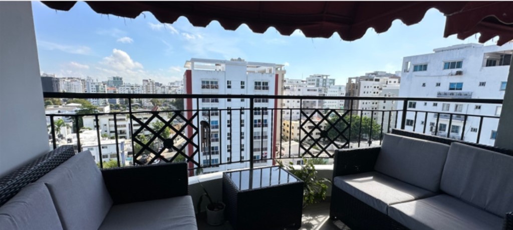 Penthouse con buena ubicacion, buena ventilacion y mucha claridad. Esta cerca de la 27 de febrero con facil acceso a supermercados, farmacias y plazas comerciales. Es excelente para quienes buscan espacio. Penthouse de 2 niveles con 348.28 m2 netos. 4 habitaciones cada una con bano y walk-in closet. 2 habitaciones en primer nivel y 2 en el segundo. Medio bano de visita. Recibidor. Uno apartamento por piso y control de acceso por piso. Area de estar. Family en el segundo nivel. Sala y comedor independientes. Cocina abierta moderna. Terraza privada en el segundo nivel muy acogedora, techada y destechada. 2 parqueos techados paralelos. Cuarto de servicio y area de lavado. Area de almacen. Precio incluye los aires acondicionados.