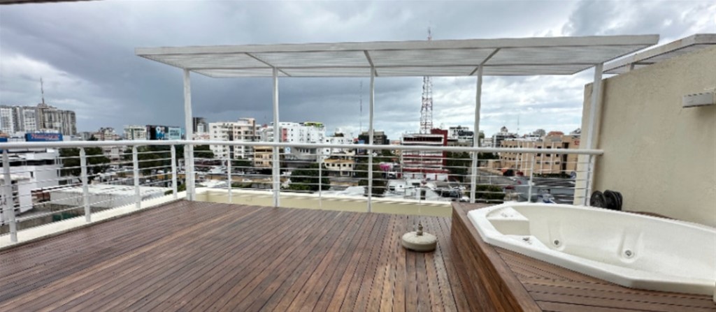 VENDO PENTHOUSE 2 NIVELES - EVARISTO MORALES Una torre ubicada a una esquina de la 27 de febrero y 2 esquinas de la Winston Churchill cerca de centros comerciales, bancos, supermercados, estaciones de gasolina y mucho mas. Posee 360 metros cuadrados repartidos en 2 niveles. Amplias areas sociales en el rooftop con balcones, terrazas, areas de estar, Es un apartamento muy claro y fresco, DESCRIPCIÓN: 2 Habitaciones cada una con su baño y walk-in closets. Area de sala y comedor espaciosa. Balcones en primer y segundo nivel. Cocina cerrada, amplia. 2 medio baños, primer y segundo nivel. Terraza con Jacuzzi, area de BBQ. Cuarto de servicio. 2 parqueos paralelos y techados. Planta full. Residencial cerrado con seguridad. Incluye electrodomésticos. PRECIO: USD$470,000