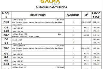 *Inicial*: 25%; 10% a la firma del contrato de opción a compra y 15% durante el proceso constructivo hasta Marzo 2025 *Contra entrega*: 65% Marzo 2025 *Características de 1 Habitación Tipo C (64.45m2), Tipo D (66.54m2) y Tipo G (67.59m2)*: Metrajes netos de apartamentos, 1 habitación, 1.5 baños, 1 parqueo, sala-comedor, mirador, área de lavado, vestidor, preinstalación de A/C en sala comedor y habitación. *Características de 2 Habitaciones Tipo F (98.52m2)*: Metrajes netos de apartamentos, 2 hab., 2.5 Baños, área útil de lavado con baño, 2 parqueo, sala-comedor, balcón, habitaciones con vestidor o closet, preinstalación de A/C en sala comedor y habitaciones. *Características de 2 Habitaciones Tipo E (88.43m2)*: Metrajes netos de apartamentos, 2 hab., 2.5 Baños, 1 y 2 parqueo, sala-comedor, balcón, área de lavado, habitaciones con closet, preinstalación de A/C en sala comedor y habitaciones. *Características de 3 Habitaciones Tipo A (145.9m2)*: Metrajes netos de apartamentos, 3 hab., 3.5 Baños, 3 parqueo, sala-comedor, balcón, área útil de lavado con baño, habitaciones con vestidor o closet, preinstalación de A/C en sala comedor y habitaciones. *Características de 3 Habitaciones Tipo PH-B (192.46+63.19m2)*: Tres niveles, metrajes netos de apartamentos, 3 parqueo+ 1 parqueo retrancado. Nivel 13: área de techo privada con baño y pre-instalación para jacuzzi. Nivel 12: sala-comedor, medio baño, amplio balcón, área útil de lavado con baño. Nivel 11: 3 habitaciones, 3 baños, habitaciones con vestidor o closet, preinstalación de A/C en sala-comedor y habitaciones.