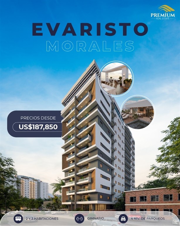 Evaristo Morales Concepto familiar 2 y 3 habitaciones Torre de 13 niveles 4 apartamentos por nivel 4 niveles de parqueos Porcelanato importado Techos en yeso Puertas en madera preciosa Cocinas modulares de alta calidad con topes de cocina en granito natural Herrajes y grifería de alta calidad Pre-instalación de acondicionadores 2 ascensores de última generación Sistema de gas común Planta full de energía de emergencia Lockers Amenidades: Lobby amueblado y climatizado Oficina administrativa amueblada Rooftop con un área social con Terrazas techadas y destechada amuebladas con picuzzi Areas de duchas y baños Gimnasio Area de juego para niños Salón multiuso Area de bar y bbq Desde: US$187,850 Plan de pago: Reserva con US$5,000 10% a la firma 30% durante la construcción 60% Contra entrega Entrega Septiembre 2028