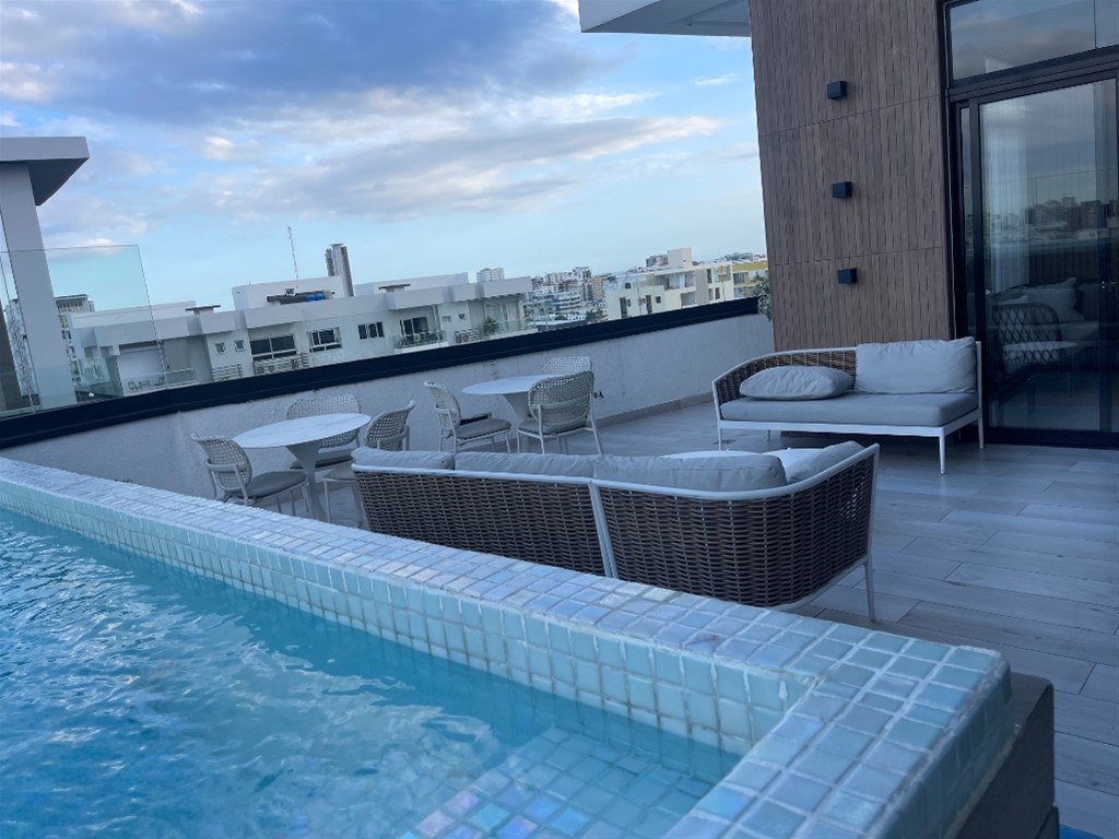 Moderno apartamento de 1 habitación en Evaristo Morales VENTA TOTALMENTE AMUEBLADO. Este acogedor apartamento puede ser tu hogar o inversión, con vista a la ciudad, fresco e iluminado. Cuenta con 65.57 metros, balcón con vista a la ciudad, baño de visita, cocina con modernos electrodomésticos e isla, habitación con baño y walking closet; 1 parqueo. La torre cuenta con dos áreas sociales, cada una con su piscina y terraza, salón de actividades, gimnasio y área de niños, dos modernos y amplios ascensores, lobby climatizado, salón de espera. PRECIO US$190,000 MANTENIMIENTO RD$ 6,500