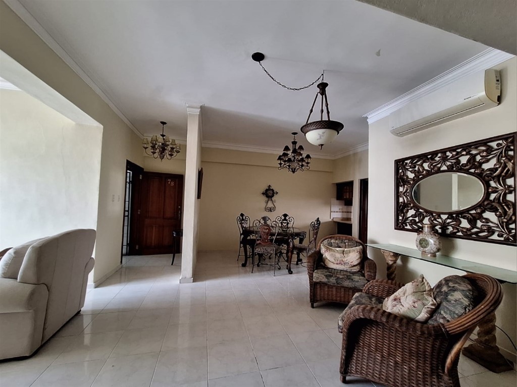 Alquiler de Apartamento Amueblado en Evaristo Morales – 3 Habitaciones – Séptimo Piso Ubicación Estratégica en Evaristo Morales, Santo Domingo Vive con estilo en este amplio y moderno apartamento amueblado en alquiler, ubicado en el 7mo piso de una torre residencial en Evaristo Morales, a solo 2 cuadras de la avenida 27 de Febrero y 4 cuadras de la Winston Churchill, una de las zonas más céntricas, seguras y demandadas del Distrito Nacional. Ideal para familias o profesionales que desean comodidad, elegancia y accesibilidad. Características del Apartamento • Piso 7 con vista despejada y excelente ventilación • Sala y comedor amueblados con mobiliario contemporáneo • Cocina equipada con electrodomésticos y desayunador • Área de lavado independiente • Cuarto de servicio con baño completo • 3 habitaciones, cada una con: o Baño privado o Walk-in clóset o Aire acondicionado • Medio baño para visitas • Balcón con vista urbana • 2 elevadores modernos y rápidos Comodidades del Edificio • Seguridad 24/7 con control de acceso • Lobby elegante • Planta eléctrica full • Cisterna • Parqueos techados Precio de Alquiler: USD $1,400 Mensuales Incluye mobiliario completo, línea blanca y mantenimiento básico. Contáctanos Hoy Mismo, para más información o agendar una visita privada: