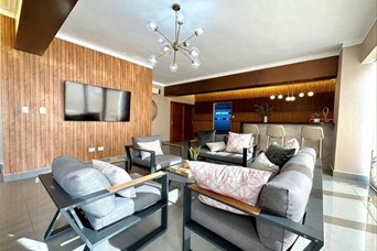 EVARISTO MORALES Acogedor Apartamento en Moderna Torre Familiar con ubicación estratégica. PRECIO US$315,000 - 181 metros área total (155 metros neto) - 3 habitaciones - 2.5 baños - Sala - Comedor - Cocina concepto abierto - Cuarto de servicio - Área de lavado - 2 parqueos Amenidades: Amplio Lobby Amueblado Salón Multiuso Terraza destechada Gimnasio equipado Dos (2) Ascensores Planta eléctrica full