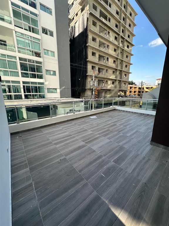Segundo piso con terraza en Evaristo Morales 2 habitaciones 2.5 baños 2 parqueos 29.5 mts de terraza cuarto de servicio ÁREAS COMUNES (Ubicadas en la azotea) Amplio lobby climatizado y amueblado. Gimnasio climatizado y equipado Amplio salón para actividades Amplia terraza destechada Uno (01) ascensor Generador eléctrico DETALLES DE TERMINACIÓN Preinstalación de aire acondicionado Grifería y aparato sanitario importado Puertas de roble importada Topes en cocina de granito Cocina modular importada Pisos en porcelanato importado Gas común