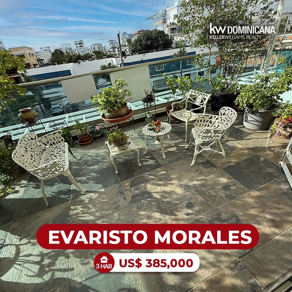 APARTAMENTO CON TERRAZA EN VENTA* – Evaristo Morales! Ubicación privilegiada, a pasos de la Av. Winston Churchill. Ubicado en uno de los sectores más céntricos y exclusivos de Santo Domingo, con acceso rápido a supermercados, restaurantes, colegios y centros comerciales. * Características principales: * 236 m² de construcción (196 m² de apto + 17 m² de balcón terraza) * 3er nivel con ascensor * Terraza * Sala y comedor espaciosos * Baño de visita * 3 habitaciones (cada una con baño y walk-in closet) * Closet de ropa blanca * Habitación de servicio con baño * Área de lavado amplia Precio de venta: US$385,000 Para más información o agendar una visita: Sugeiley Ozuna | KW Dominicana 809-885-0795 | 809-475-7171 #ApartamentoEnVenta #EvaristoMorales #InversiónInteligente #SantoDomingo #BienesRaícesRD #KWCapital