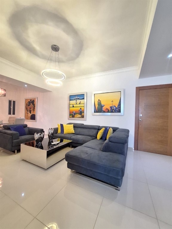 Evaristo Morales! en zona tranquila, centrica y residencial Apartamento amplio , excelente distribución con areas que puedes aprovechar al maximo ya que tiene los espacios abiertos e integrados. Este apartamento cuenta con 3 habitaciones y 3.5 baños, brinda espacios amplios y desahogados. Su diseño contemporáneo, acabados y terminaciones se complementa para un ambiente pulcro y elegante. El inmueble se entrega amueblado, listo para habitar desde el primer día, con 2 parqueos asignados y un interior optimizado para el confort familiar. Esta unidad es ideal para que te mudes con tu familia o para ponerlo a producir alquilandolo amueblado. Características y amenidades 3 habitaciones 3.5 baños 2 parqueos techados 4to nivel 2 ascensores Sala Comedor Estar- Estudio Balcon Habitacion de servicio Cocina equipada Terminaciones de 1era Planta electrica full Gas comun Incluye mobiliario Año de construido 2017 Mantenimiento RD$11,000 Precio de venta US$315,000 Precio de alquiler US$1,900