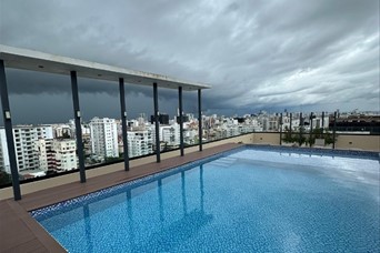 Piso 9 2 habitaciones, cada una con su baño privado y walk-in closet. 1 habitación de servicio con baño. 1 baño de visitas. Cocina moderna, totalmente equipada y en excelente estado; nunca ha sido utilizada. Lobby climatizado. Piso 11 Piscina y jacuzzi. Bar y gimnasio. Sala infantil y sala de negocios, entre otras comodidades.