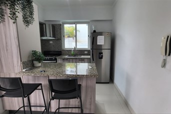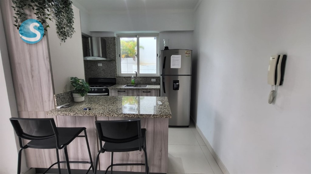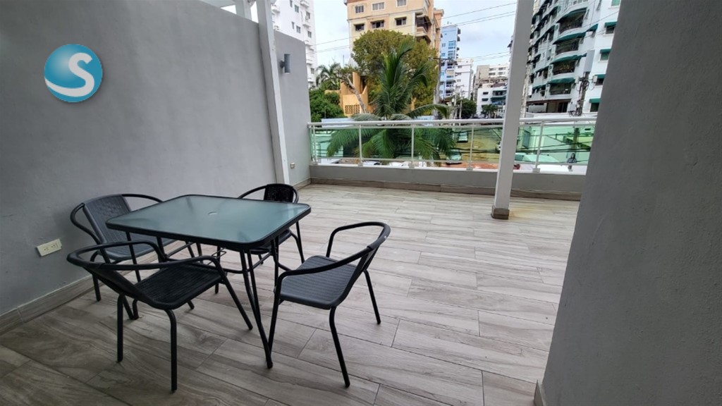 Te ofrezco en alquiler un acogedor y fresco apartamento de 1 habitación amueblado, con amplia terraza privada, donde podrías tener ricas comidas en espacio abierto o recibir amigos de visita. Ubicado en excelente zona del Distrito Nacional, en Evaristo Morales, a 2 cuadras de la Iglesia El Buen Pastor. Cuenta con habitación con walk in closet y baño, sala-comedor, cómoda cocina con desayunador, área de lavado, y baño de visita. Incluye toda la línea blanca. En el último piso podrá disfrutar de las áreas sociales como salón multiuso, área de niños, gimnasio, y jacuzzi. Precio $950 mensual. Incluye mantenimiento. MLS #25-1020