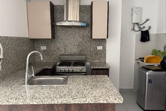 Evaristo Morales 1 hab 1.5 baños Sala Cocina Comedor 1 parqueo Nivel 4 60 mt2 Gym Terraza Salón multiuso $800 /mant incluido Línea blanca