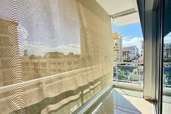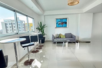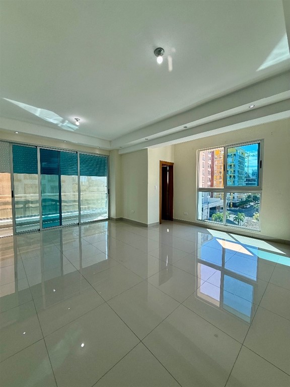 Rento hermoso apto con terminaciones de primera, balcón frontal tipo terraza a cuadras de Plaza Central, en el exclusivo sector de Evaristo Morales Características 75 metros (87.5 incluyendo parqueo) 1 habitación 1.5 baños 1 parqueo techado El apartamento tiene Sheetrock con luces, shutters en balcón y habitación, cortinas permas en balcón Torre con gimnasio, lobby climatizado y amplia área social con una parte cerrada climatizada y otras abiertas con techo y sin techo Renta: US$850 (Mantenimiento Incluido) Reina Puig 8297732266
