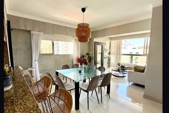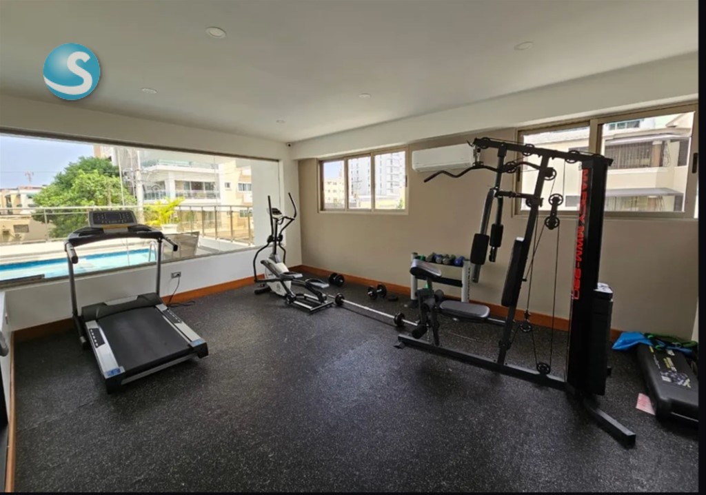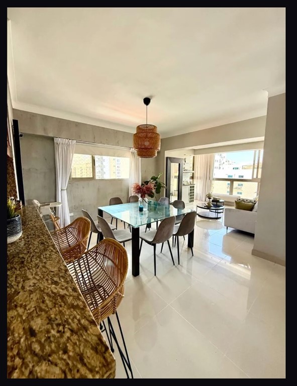 Detalles del inmueble • Tipo de propiedad: Apartamento • Nivel / Piso: 7 • Año de construcción: 2019 • Metraje interior: 124 m² netos • Metraje total: 140 m² (incluye parqueos) • Habitaciones: 2 (cada una con baño privado) • Baños: 2.5 (baño de visita incluido) • Family room: Sí • Sala: Sí • Comedor: Sí • Cocina: Sí • Cuarto de servicio: Sí (con baño) • Área de lavado: Sí • Pisos: Porcelanato • Madera: Roble • Parqueos: 2 • Gas: Independiente, con medidor por apartamento • Mantenimiento mensual: RD$12,000 ????? Amenidades / Áreas comunes • Piscina • Gimnasio • Área infantil • Torre familiar • 10 niveles / 3 apartamentos por piso (excepto nivel 2 con solo 2 unidades y área común) ? ?? Precio de venta • US$ 270,000,00