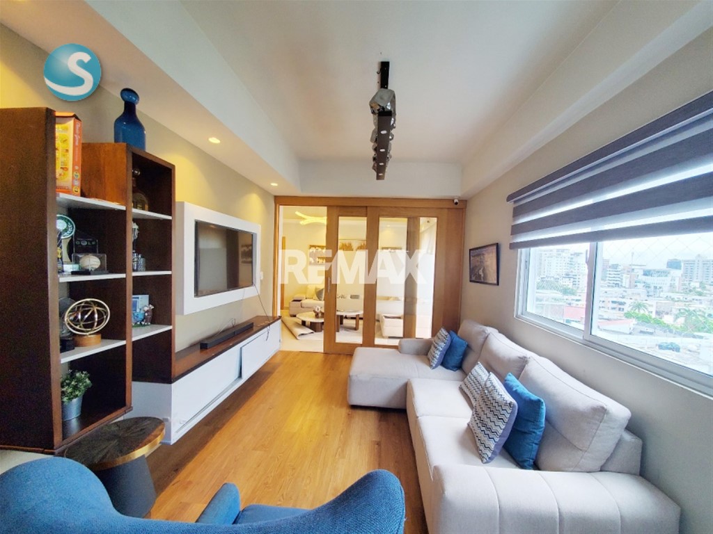 Evaristo Morales – Santo Domingo Apartamento amplio en venta Ubicado en una zona estratégica y residencial, este apartamento ofrece comodidad, amplitud y una distribución ideal para vivir con funcionalidad. Características del apartamento: • 3 habitaciones • 2.5 Baños • 8vo Piso • Balcón frontal con buena iluminación • Studio • Sala • Comedor • Cocina con distribución práctica • Área de lavado • Cuarto de servicio con su baño • 2 parqueos techados De la torre: • Ascensor • Planta eléctrica full • Seguridad • Portones eléctricos • Gas común • Terraza