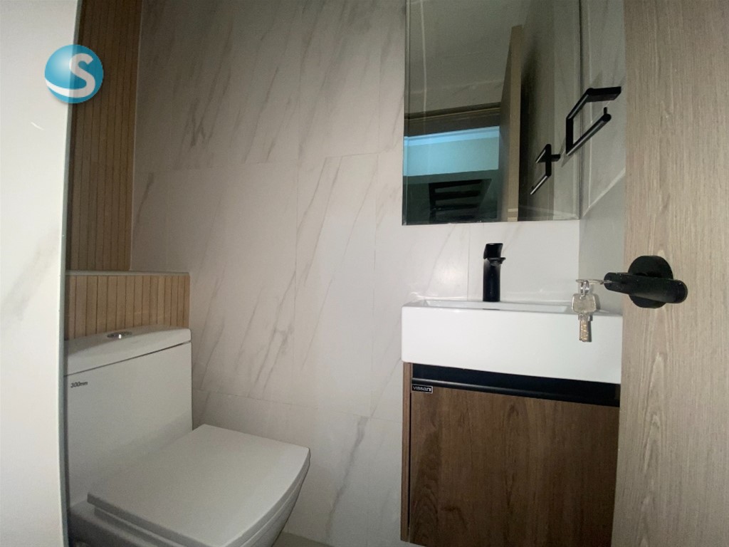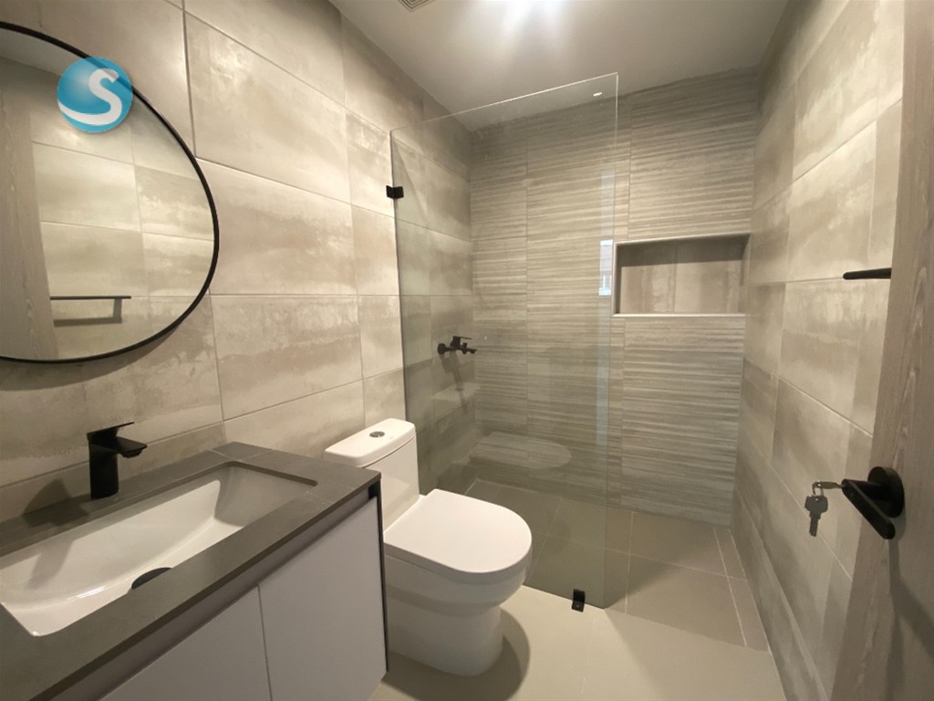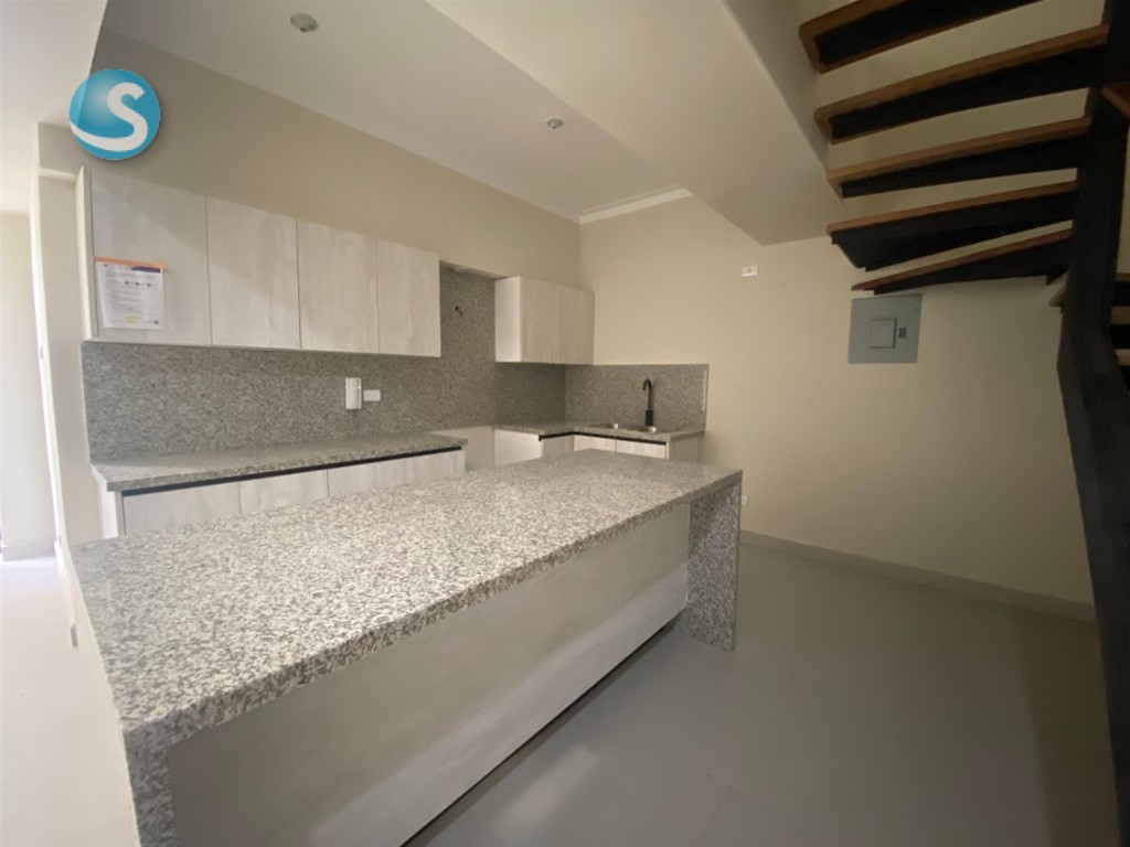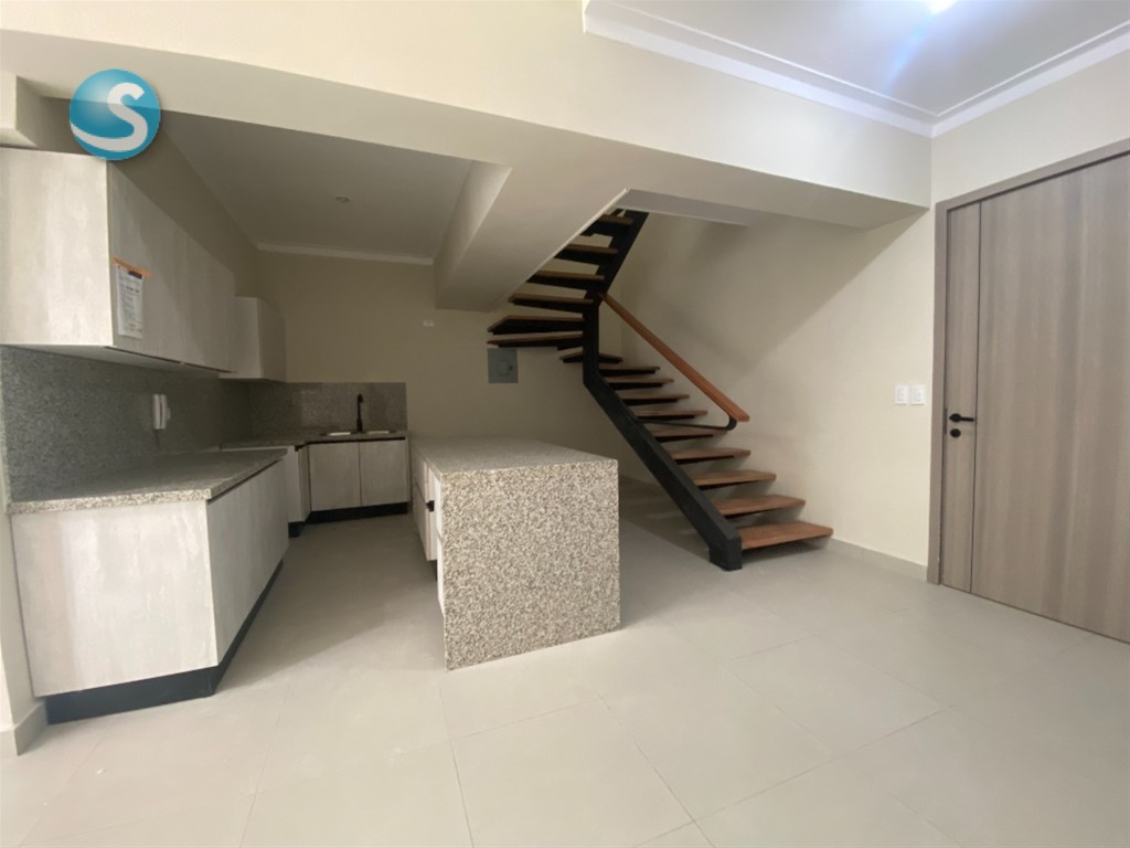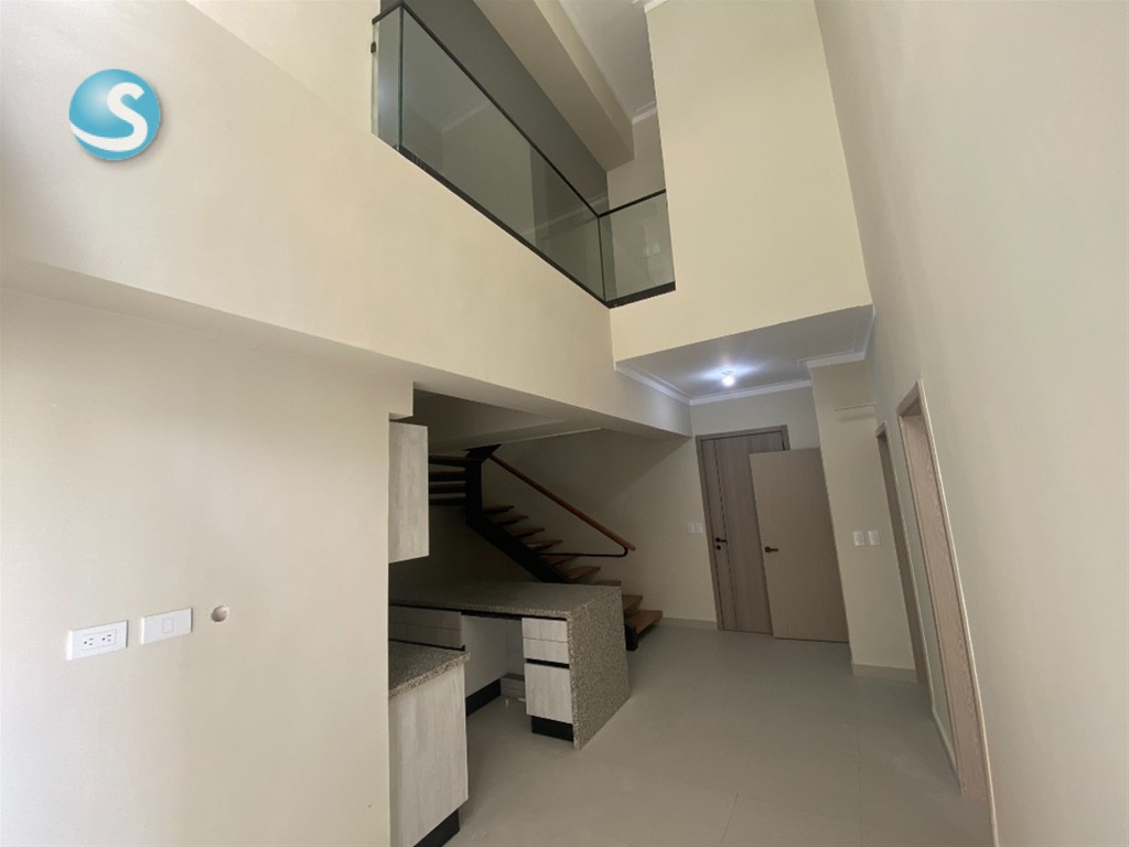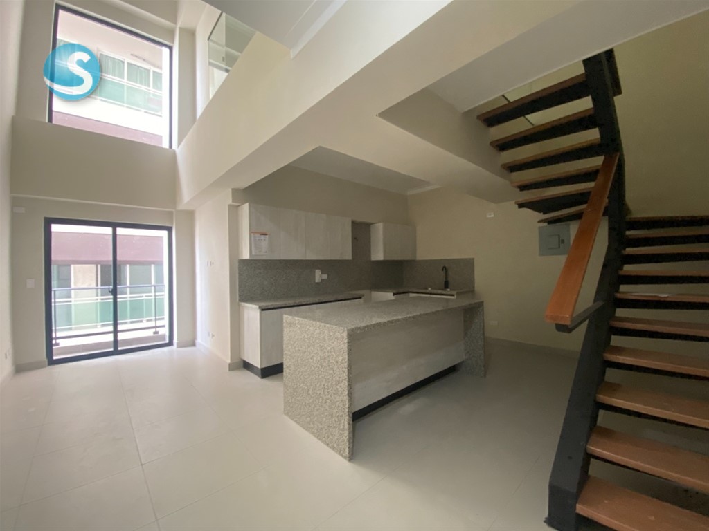 Apartamento tipo loft de venta en moderna torre ubicada en Evaristo Morales 105 mts, 2 habitaciones, principal con W/C 2.5 baños Estar familiar Sala Cocina con desayunador Balcón Área de lavado 2 parqueo techado, Locker opcional Escalera de emergencia Terminaciones: Pisos en Porcelanato Madera preciosa Jambas Tope de cocina en granito natural Cornisas en sheetrock Amenidades y características de la torre: Portón eléctrico Ascensor Luz 24 hrs Cámaras de seguridad Planta full Área de juego Gimnasio Piscina Sauna Salón Multiuso Lobby climatizado Terraza común Gas común Pozo Cisterna