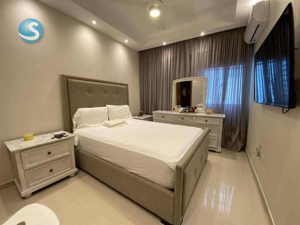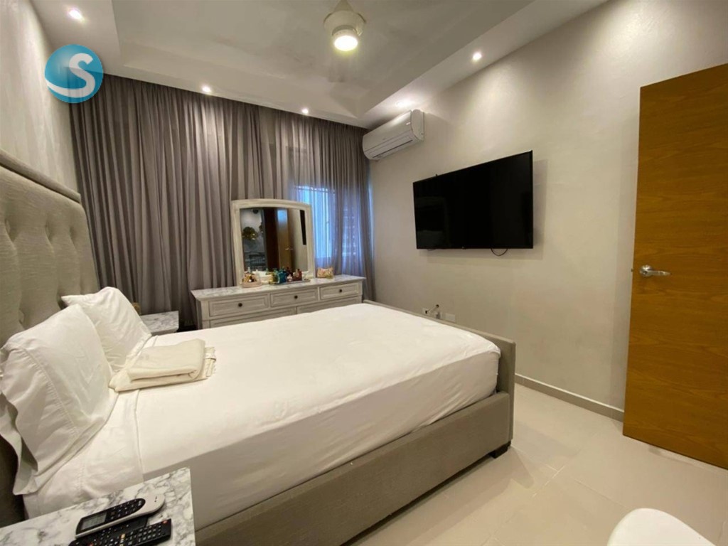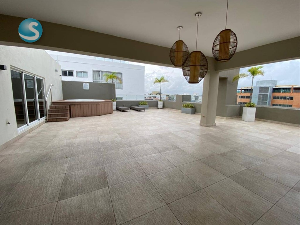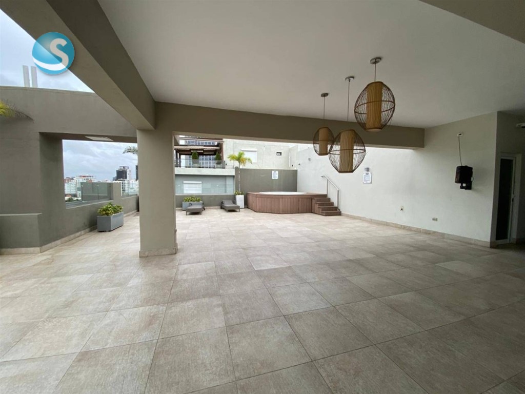 Alquiler en exclusiva torre ubicada en Evaristo Morales Piso 8 105 mts 2 habitaciones 2.5 baños Sala Comedor Estar familiar Recibidor Balcón Área de lavado Habitación de servicio 2 parqueos paralelos y techados Escalera de emergencia Terminaciones Pisos en Porcelanato Madera Roble Jambas Tope de cocina en Granito Natural Cornisas en Sheet Rock Intercom Amenidades y características de la torre Portón eléctrico Ascensores Luz 24 hrs Cámaras de seguridad Planta full Área de juegos Gimnasio 2 jacuzzis Salón Multiuso Lobby climatizado Terraza común Gas común Pozo Cisterna Precio de alquiler US$1,950 Información Carlos Checo 829-585-4899