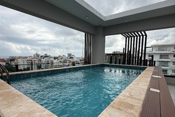 Evaristo Morales Apartamento de 2 habitaciones con Piso 11 en Evaristo Morales, próximo a la Avenida 27 de Febrero y a la Avenida Winston Churchill. Amenidades: -Lobby amueblado y climatizado -Seguridad 24 horas -Gas Común con medidor -Planta Eléctrica Full -Lounge -Terraza destechada -Gimnasio -Jacuzzi -Piscina Característica del inmueble: -Piso 11 -105 Metros netos -2 habitaciones, Habitación principal con walking closet y baño. Habitación secundaria con closet y baño. -Medio baño de visita -Estudio -Sala/Comedor -Cocina abierta -Área de lavado -Cuarto de servicio con su baño -2 parqueos Precio: USD$310,000 Mantenimiento: RD$13,000 LISTO PARA ENTREGA