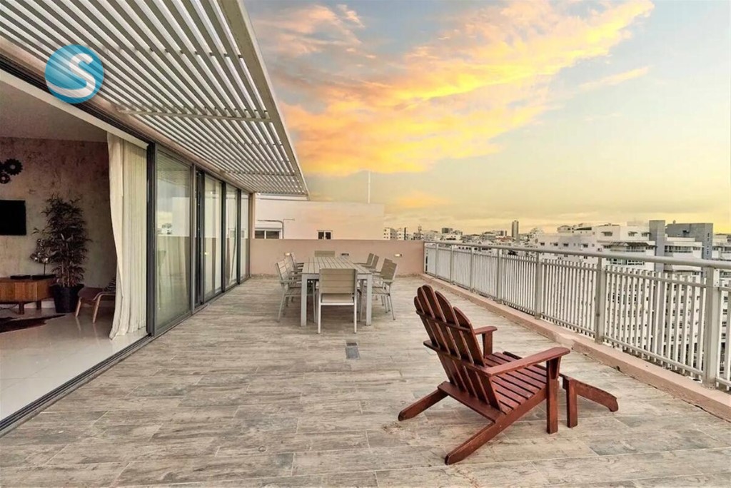 Se alquila Penthouse amueblado de 4 habitaciones en Evaristo Morales Exclusivo Penthouse Duplex totalmente amueblado en Evaristo Morales, Santo Domingo Descubre el lujo y la exclusividad en este Penthouse dúplex de 332m2 repartidos asi: Superficie neta 172.98m2 apartamento y 159m2 terraza Privada Ubicado en la zona más segura y deseable de Evaristo Morales, a solo una cuadra de Winston Churchill y a pasos del Blue Mall. Este impresionante espacio es ideal para quienes buscan un hogar elegante y confortable en el corazón de Santo Domingo, ofreciendo: • Ubicación Privilegiada: Situado en el centro de la ciudad, cerca de los mejores centros comerciales, restaurantes y bares. Características del PH • 4 Dormitorios y 4 Baños de Lujo: Amplios espacios con aire acondicionado, TVs inteligentes con Netflix y baños en suite. • Terraza Privada con Jacuzzi: Disfruta de vistas panorámicas y relájate en tu propio jacuzzi. • Cocina Moderna y Sala de Estar Espaciosa: Totalmente equipada con todos los electrodomésticos modernos, incluyendo lavadora/secadora. Característica de la torre • Gimnasio y Sauna • Seguridad 24/7: Con recepción y vigilancia constante para tu tranquilidad y seguridad. Aspectos Destacados: • Diseño de dos niveles independientes con accesos separados, ofreciendo versatilidad y privacidad. • 3 Espacios de Estacionamiento Precio de alquiler: US$ 4200 amueblado, mantenimiento incluido ID: EB-UW1361 https://www.tropical-livingdr.com/property/se-alquila-penthouse-amueblado-de-4-habitaciones-en-evaristo-morales