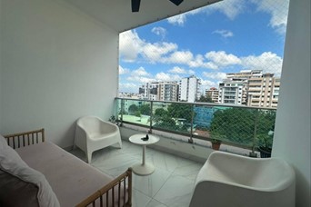 Apartamento en torre moderna de aproximadamente 4 años NO AIRBNB 189 mts total 3 habitaciones ( principal con walk in clóset y baño ) 2 baños completos Medio baño para visita Balcón frontal Estudio Sala Comedor Cocina fría Desayunador Cocina caliente ( se puede hacer) Área de lavado Habitación de servicio con baño 2 Parqueos paralelos soterrados Incluye aire central en sala , comedor y estudio 3 aires acondicionados split Estufa empotrada Extractor Shutters Malla Características de la torre Torre familiar 2 ascensores de última generación Lobby climatizado amueblado Piscina Jacuzzi Área para bbq Área de niños Gimnasio Salón multiuso climatizado Gas común Seguridad 24/7 Cámaras de seguridad Conserje Precio de venta US$310,000 Mantenimiento RD$14,000