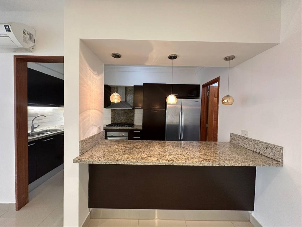 ALQUILER CON LÍNEA BLANCA EN EVARISTO MORALES 134 mts neto 2 habitaciones (principal con walk in clóset ) Sala Comedor Cocina Desayunador Área de lavado Habitación de servicio con baño 2 Parqueos Aire acondicionado Lava plato Lavadora secadora Estufa Horno Extractor Shutter TERMINACIONES Pisos en porcelanato Revestimientos en baños de cerámica importada Ebanistería en roble Cocina modulares importados Pre-instalación de unidades de aire acondicionados AREAS COMUNES Gimnasio ?salón multiuso Área de juegos para niños Planta eléctrica Portón eléctrico Área social con terraza Sistema de intercomunicación Sistema contra incendio Precio de venta US$240.000