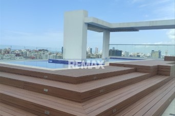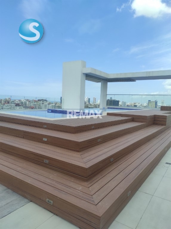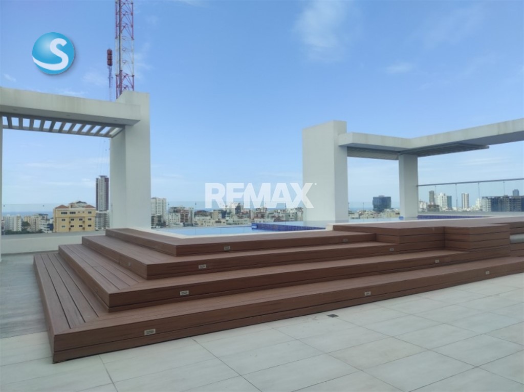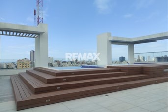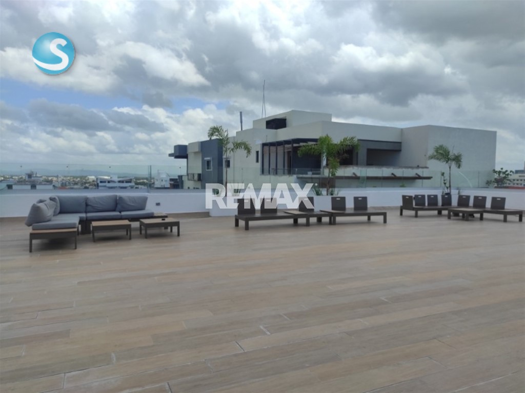 Apartamento en alquiler en el sector Evaristo Morales: 80 mts2 1 habitación con su baño y walking closet Baño de visitas Sala-comedor Cocina Area de lavado Un parqueo techado Calentador de gas Lobby amueblado y climatizado Area social Piscina Gimnasio Terraza destechada BBQ Salon de eventos Kitchenette Area de juego para niños Seguridad 24/7 Gas común con su medidor 3 ascensores Planta full