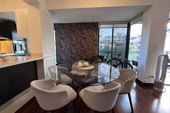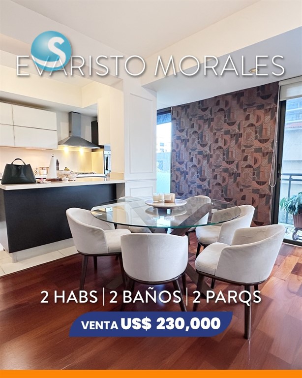 Apartamento en Venta en Evaristo Morales. Este apartamento en una torre 100% familiar se encuentra ubicado en zona céntrica y de fácil acceso, en la Av. Roberto Pastoriza proximo a supermercados, colegios, farmacias, parques y demás lugares de interés. Con 125.55 m2 + 2 parqueos, este apartamento cuenta con: 2 habitaciones 2 baños Sala, Comedor Cocina abierta con desayunador Balcón Cuarto y baño de servicio y área de lavado 2 parqueos Área social con Gimnasio y salón para eventos Lobby Ascensor Planta eléctrica Terminaciones: Pisos en madera de ingeniería y áreas húmedas en porcelanato Cocina modular importada y tope en cuarzo blanco Puertas en roble laqueadas