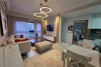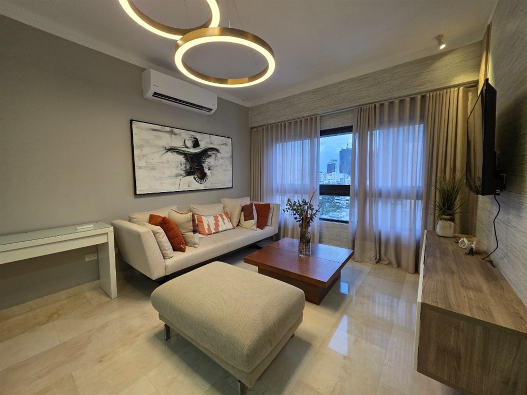 Apartamento en alquiler amueblado, Evaristo Morales!! Piso 10 1 habitación 1.5 Banos Amueblado completo Shutters de proteción Cocina Sala/ comedor walking closet 2 parqueo techados 2 ascensores planta full Area de juego de ninos Area social para actividades Gimnasio con vista espectacular Terraza en 12 avo nivel Jacuzzi en área social Precio US$1,100.00 Sugeiley Ozuna 809-885-0795 Kw Capital