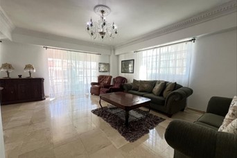 Alquiler amueblado de amplio apartamento clásico en Evaristo Morales 3 habitaciones 3.5 baños Sala Comedor Cocina Balcón Área de lavado Habitación de servicio 2 parqueos Terminaciones Pisos en mármol Madera preciosa Tope de cocina en granito Cornisas en sheet rock Intercom Amenidades y características de la torre Portón eléctrico Luz 24 hrs Cámaras de seguridad Planta full Cisterna Precio de alquiler US$1,200 Información: Fidelina Artiles 809-912-2561 [email protected]