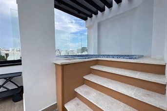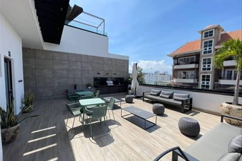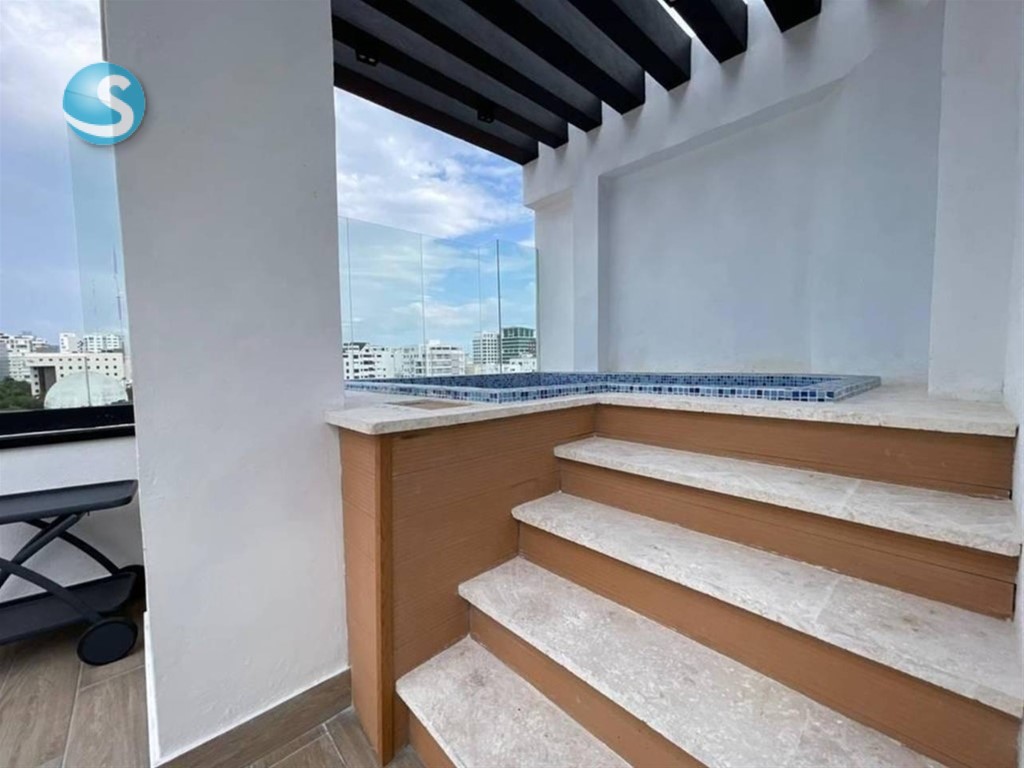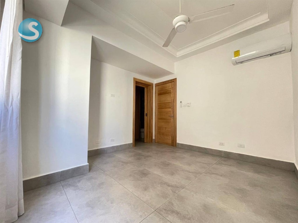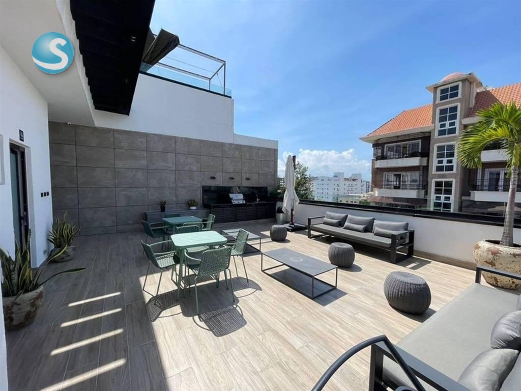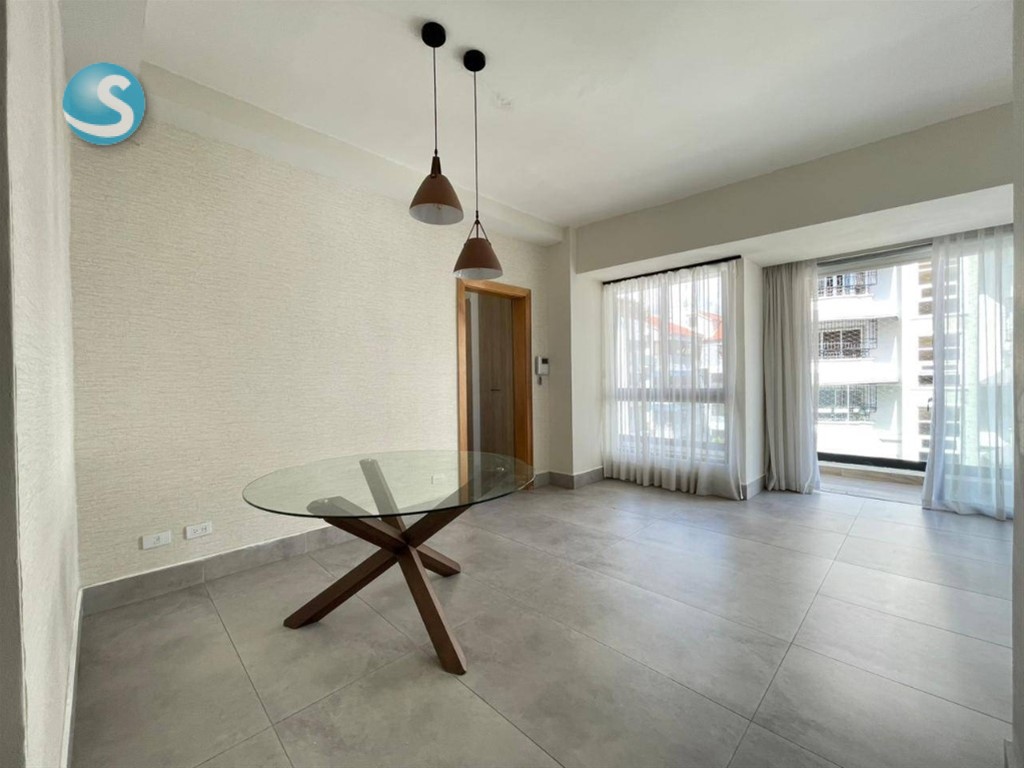 Apartamento de 2 habitaciones en alquiler en un 4to piso, en el Evaristo Morales de Santo Domingo, a una esquina de la Ave. Winston Churchill, con facilidad de acceso, y próximo a farmacias, colegios, supermercados, plazas comerciales, bancos entre otros. CARACTERISTICAS: *Sala *Comedor *Cocina *Área de lavado *Cuarto de servicio TERMINACION: *2 habitaciones c/u con baño y walk in closet *½ baño de visita *Balcón tipo terraza * 110 metros * Malla de seguridad *Lobby Climatizado *Área social *Terraza destechada *Lounge amueblado y climatizado Jacuzzi BBQ Área de juego de niños Gimnasio equipado y climatizado Seguridad 24 horas 2 parqueos techados Gas con medidor Locker Portón eléctrico Planta eléctrica full US$1,300.00
