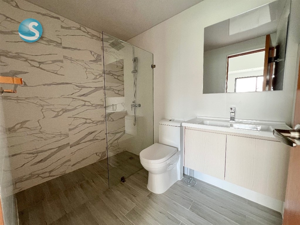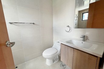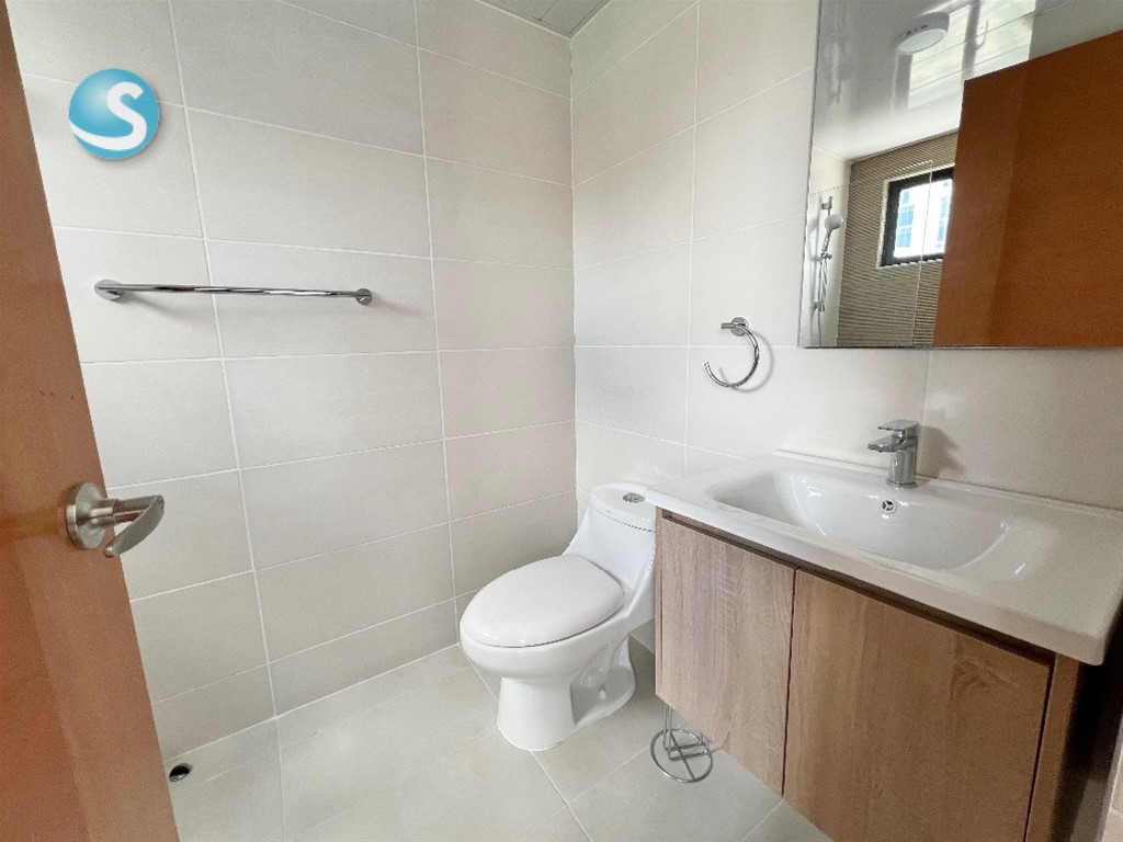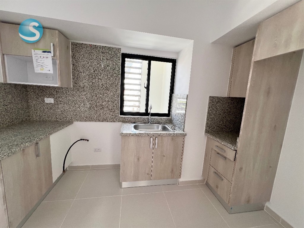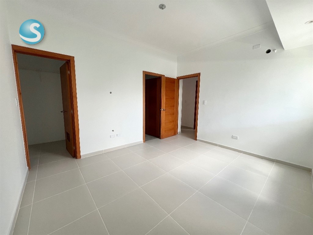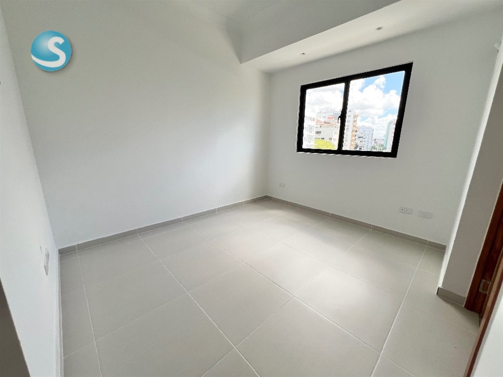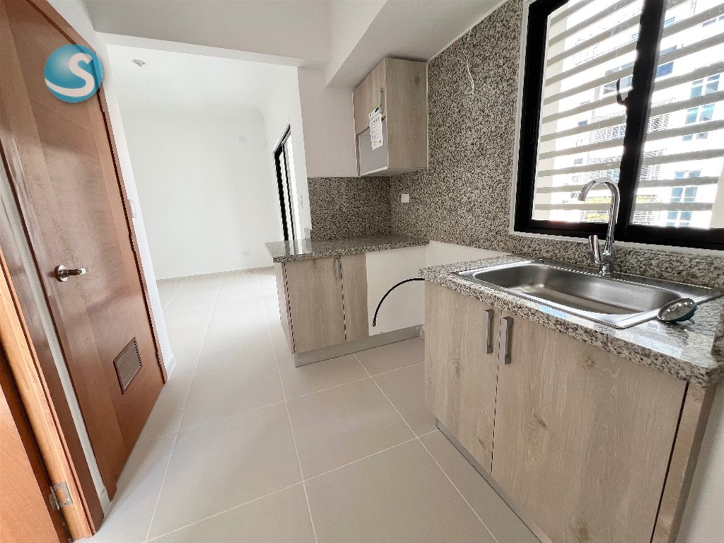 2 habitaciones, cada una con baño. Habitación principal con walk in closet Sala Comedor Cocina Balcón Baño de visita Habitación de servicio con baño Closet de lavado Closet de ropa blanca 2 parqueos lineales Torre Familiar con amenidades Mantenimiento incluído (sin gas)