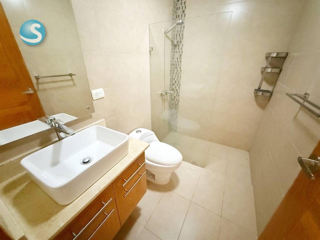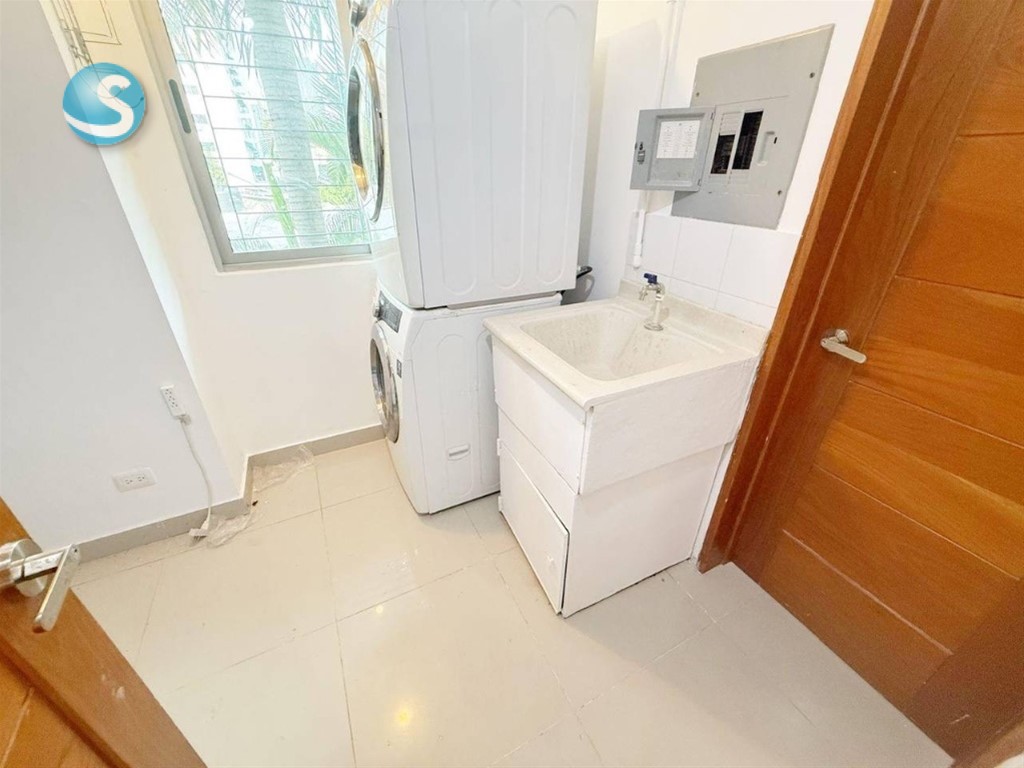 Moderno y amplio apartamento en venta en Evaristo Morales Piso 2 150 mts 2 habitaciones 2.5 baños Sala Comedor Desayunador Cocina Locker Balcón integrado Área de lavado Habitación de servicio 2 parqueos paralelos y techados Escalera de emergencia Terminaciones Pisos en porcelanato Madera preciosa Tope de cocina en mármol Cornisas en sheet rock Intercom Amenidades y características de la torre Portón eléctrico Ascensor Luz 24 hrs Cámaras de seguridad Planta full Área de juegos Gimnasio Salón Multiuso Lobby climatizado Terraza común Gas común Pozo Cisterna Precio de venta US$240,000 Mantenimiento RD$8,500 GAB.