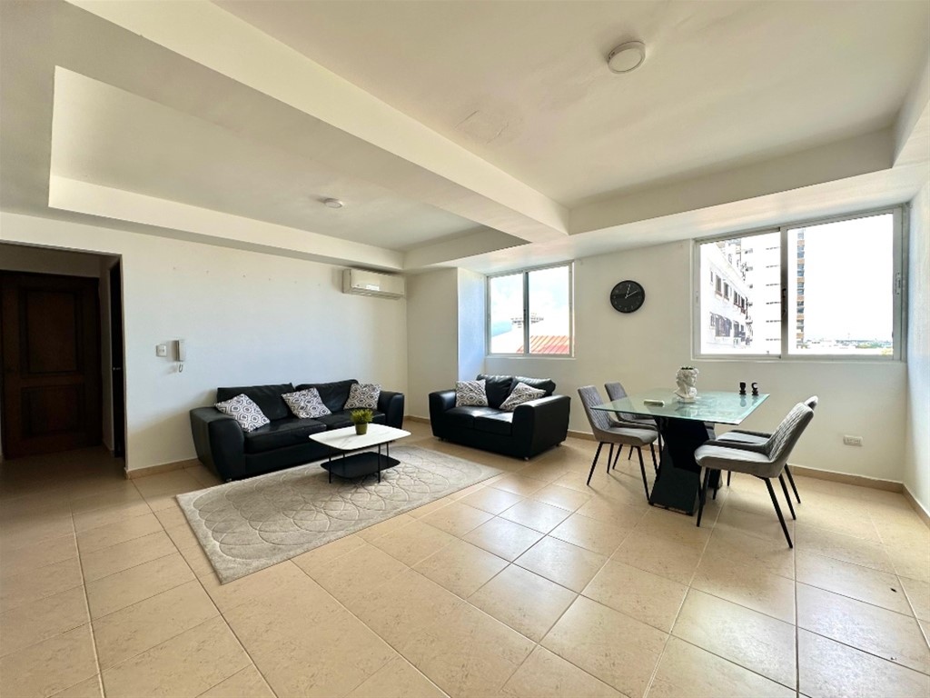Gazcue Apartamento amueblado en alquiler por tan solo US$850 al mes. 66 mts2 1 habitación 1 baño Sala-comedor Cocina Área de lavado 1 parqueo techado La torre incluye lobby, ascensor, control de acceso, gas común, seguridad 24/7 y planta eléctrica