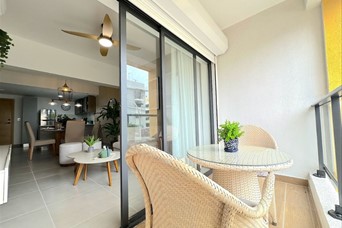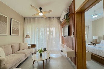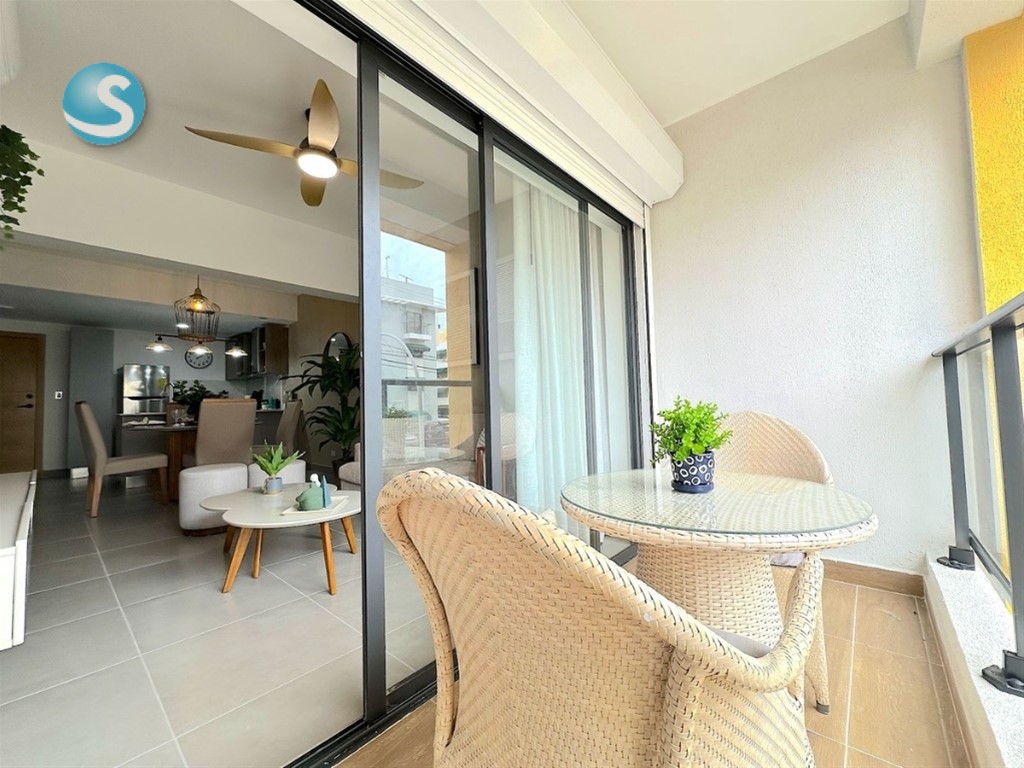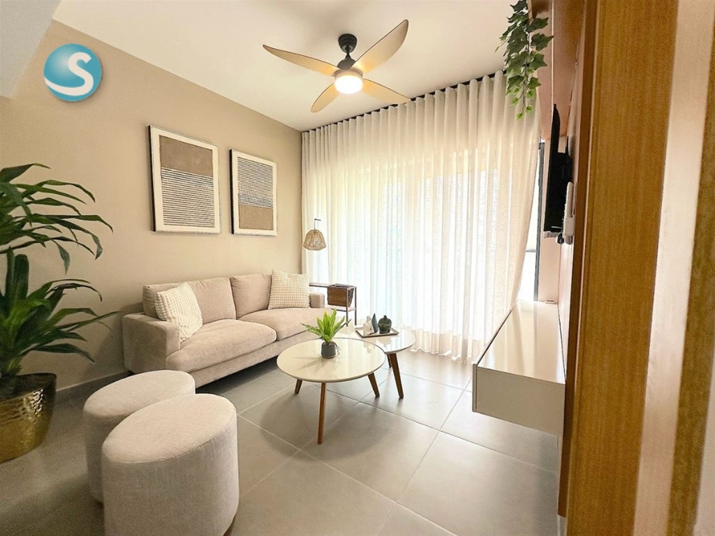 Moderno apartamento en alquiler en Gazcue Alquiler amueblado 60 mts. neto Piso 2 1 Habitación con walk-in closet Balcón Sala /comedor 1 baño Cocina Área de lavado 1 Parqueo Lobby climatizado 3 Ascensores Planta Full Gas común Ducto de basura climatizado Piscina semi olímpica Cancha de futbolista Cancha de pádel Área de juego para niños Gimnasio Lounge Terraza destechada con vista al mar Parque Precio de alquiler amueblado : USD$ 1,100