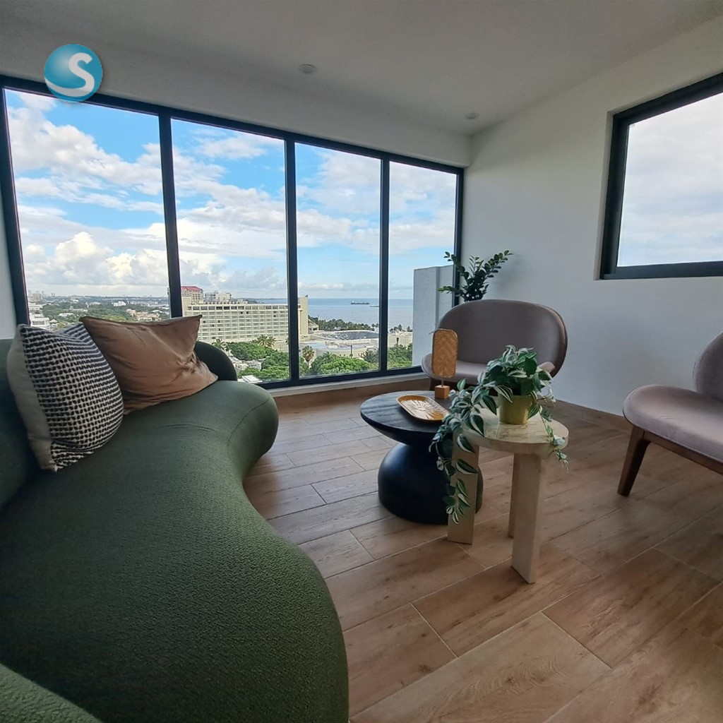 APARTAMENTO EN ALQUILER EN GAZCUE US$1,250.00 Incluye línea blanca CARACTERÍSTICAS DEL APARTAMENTO - Piso 12 - Vista al mar - 67 metros cuadrados - 1 Habitación con walk-in closet y baño - Sala/Comedor - Cocina con desayunador - Balcón con vista al mar -1 parqueo CARACTERÍSTICAS DEL COMPLEJO - 3 ascensores - Lobby - Recepción - Piscina - Áreas sociales en el último piso - Terraaz techada y destechada - Gimnasio - Salón de reuniones - Sauna - Control de acceso - Seguridad 24/7 - Torre de parqueos - Portón eléctrico