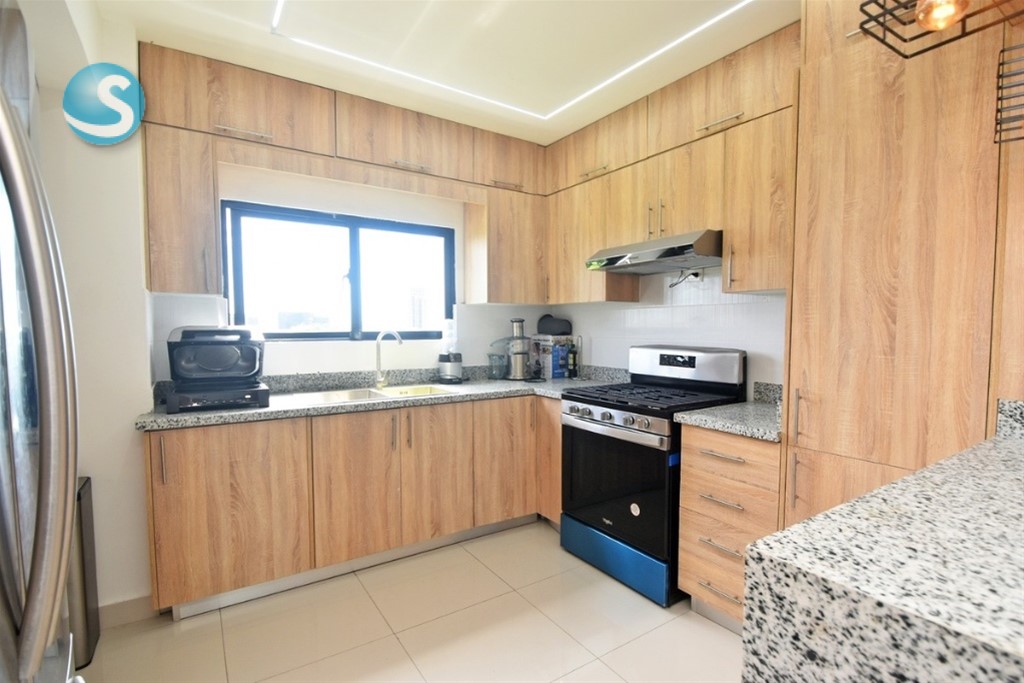 ALQUILER AMUEBLADO EN EL EXCLUSIVO SECTOR DE GAZCUE PISO 5 Sala Comedor Cocina Desayunador 3 habitaciones 2.5 baños Balcón Habitación de servicio Área de lavado 2 parqueos techados Intercom Escaleras de emergencias AMENIDADES Ascensor Planta full Lobby climatizado Picuzzy Gym Salón multiuso Gas común Luz 24/7 Cámaras de seguridad Conserje Precio de alquiler US1,650 mas información 849-342-8022